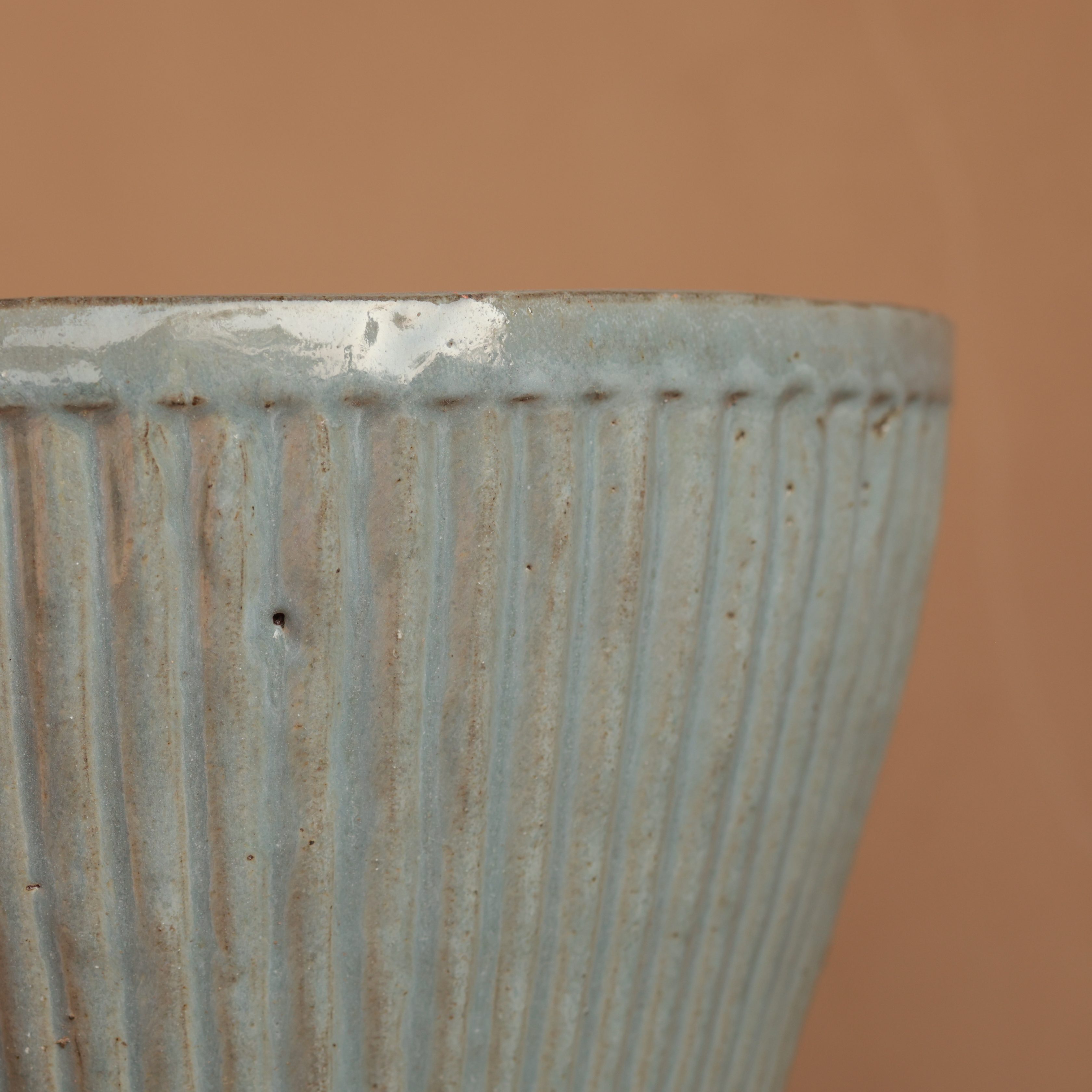 Vertical ridges create a sleek, structured look, enhancing the planter’s modern appeal. The subtle glaze adds depth while maintaining an understated elegance. Perfect for small plants or minimalist arrangements.