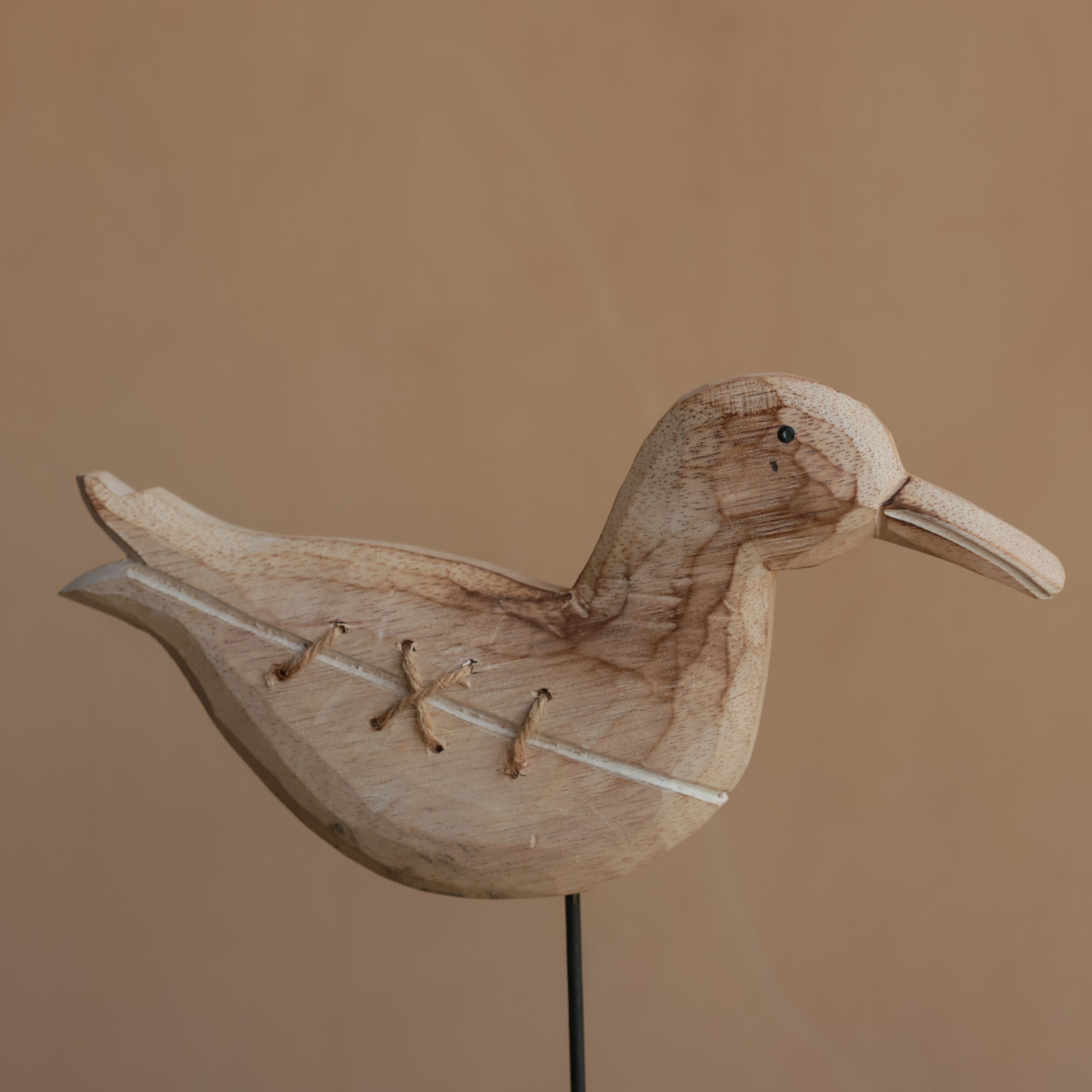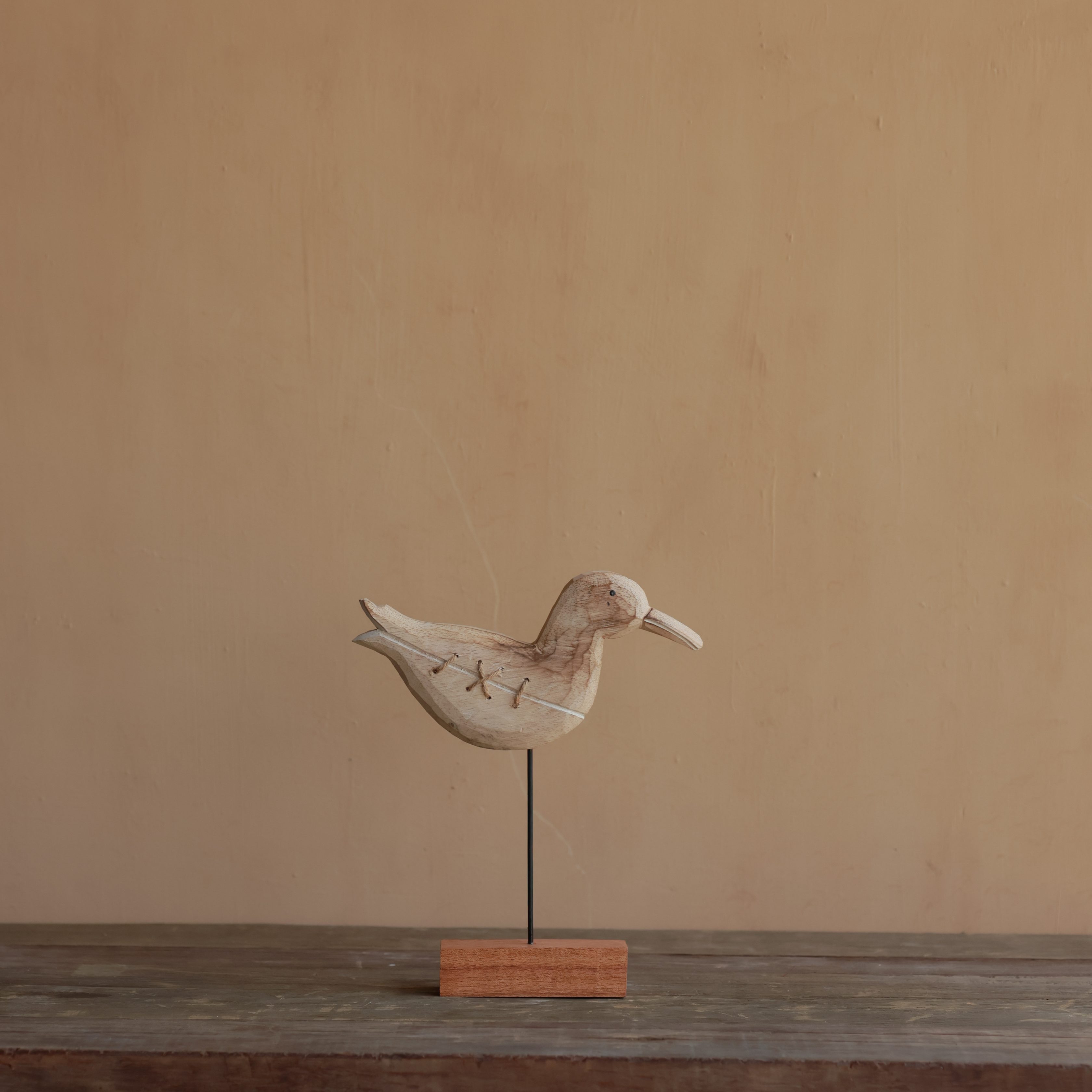 Add a touch of rustic charm to your home with this beautifully handcrafted wooden duck figurine. Made from high-quality natural wood, this unique piece showcases exquisite craftsmanship with carefully carved details and a smooth finish. The duck is elegantly mounted on a sturdy wooden base with a sleek metal rod for support, making it a perfect tabletop or shelf display.