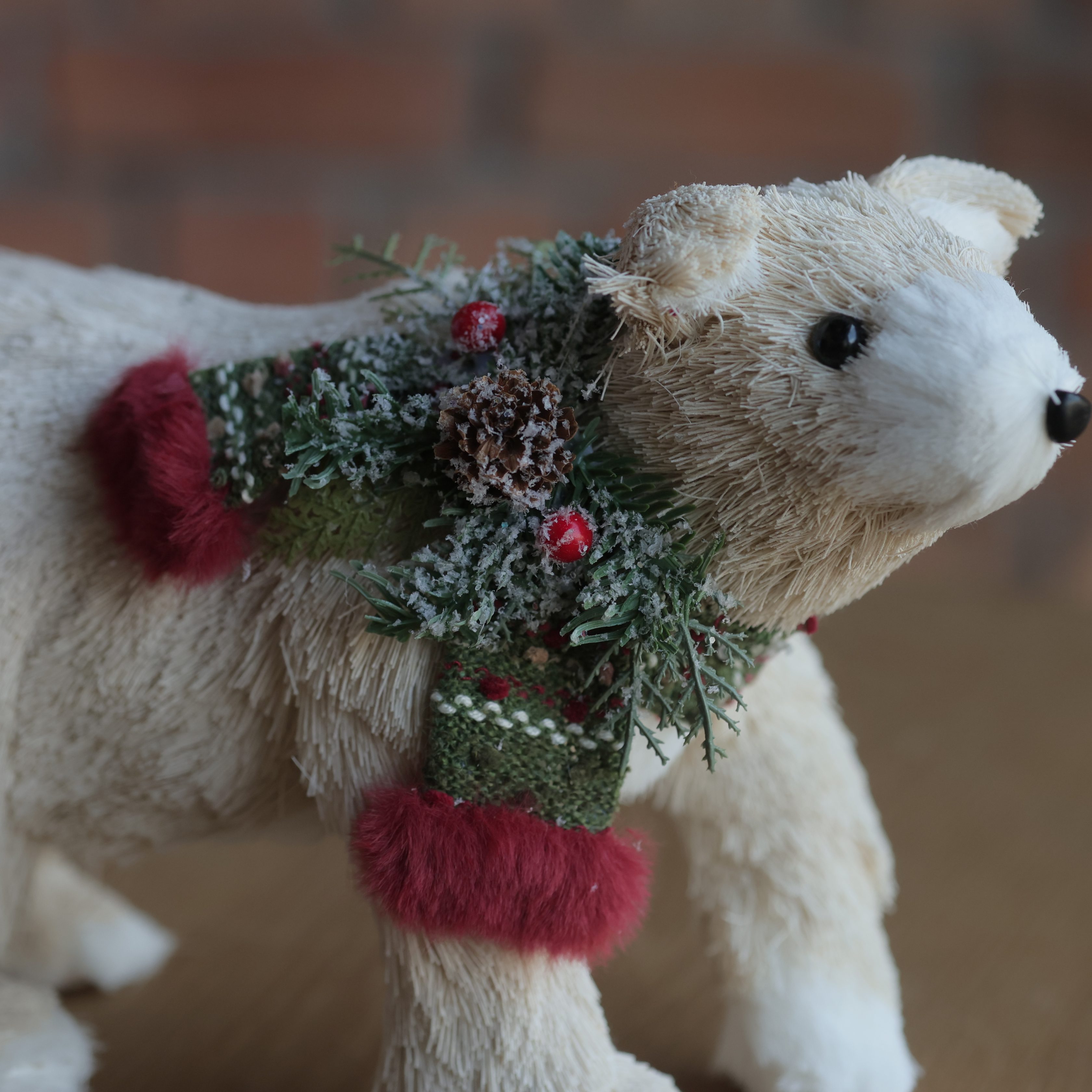 Bring a touch of frosty charm and festive warmth to your Christmas d?cor with the Arctic Cheer Bear. This adorable bear figurine captures the magic of the winter season with its soft, snowy texture and gentle expression. Dressed in a festive garland adorned with pine leaves, frosted berries, and a hint of shimmer, it perfectly balances rustic charm with holiday elegance. The Arctic Cheer Bear evokes the peaceful stillness of a snowy forest, making it an enchanting accent for mantels, entryways, or under-the-tree displays. Its lifelike detailing and wintry palette add a cozy yet refined aesthetic, ideal for creating a heartwarming Christmas setting. Whether displayed alone or paired with other winter woodland companions, this bear becomes a symbol of comfort, joy, and the tranquil beauty of the season.