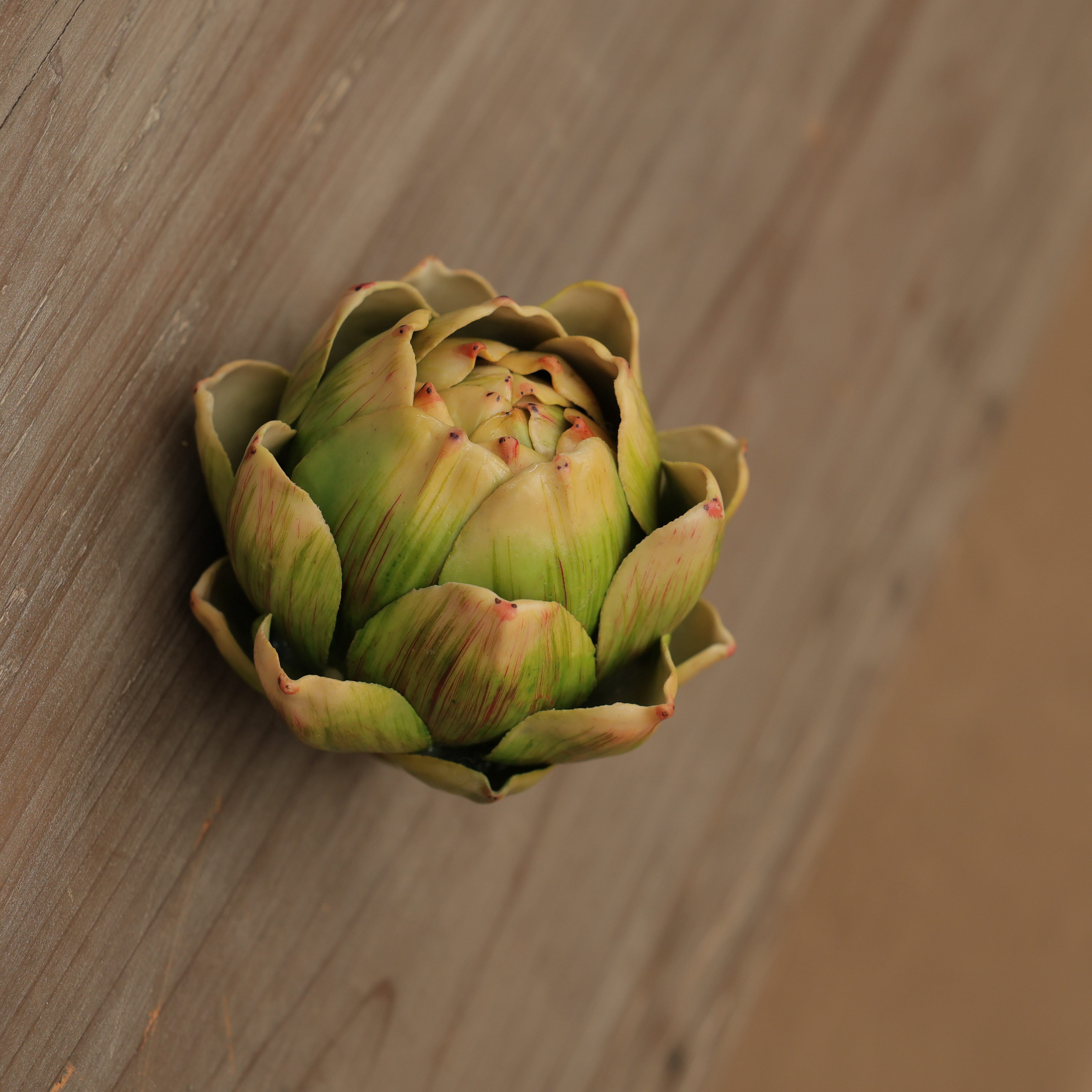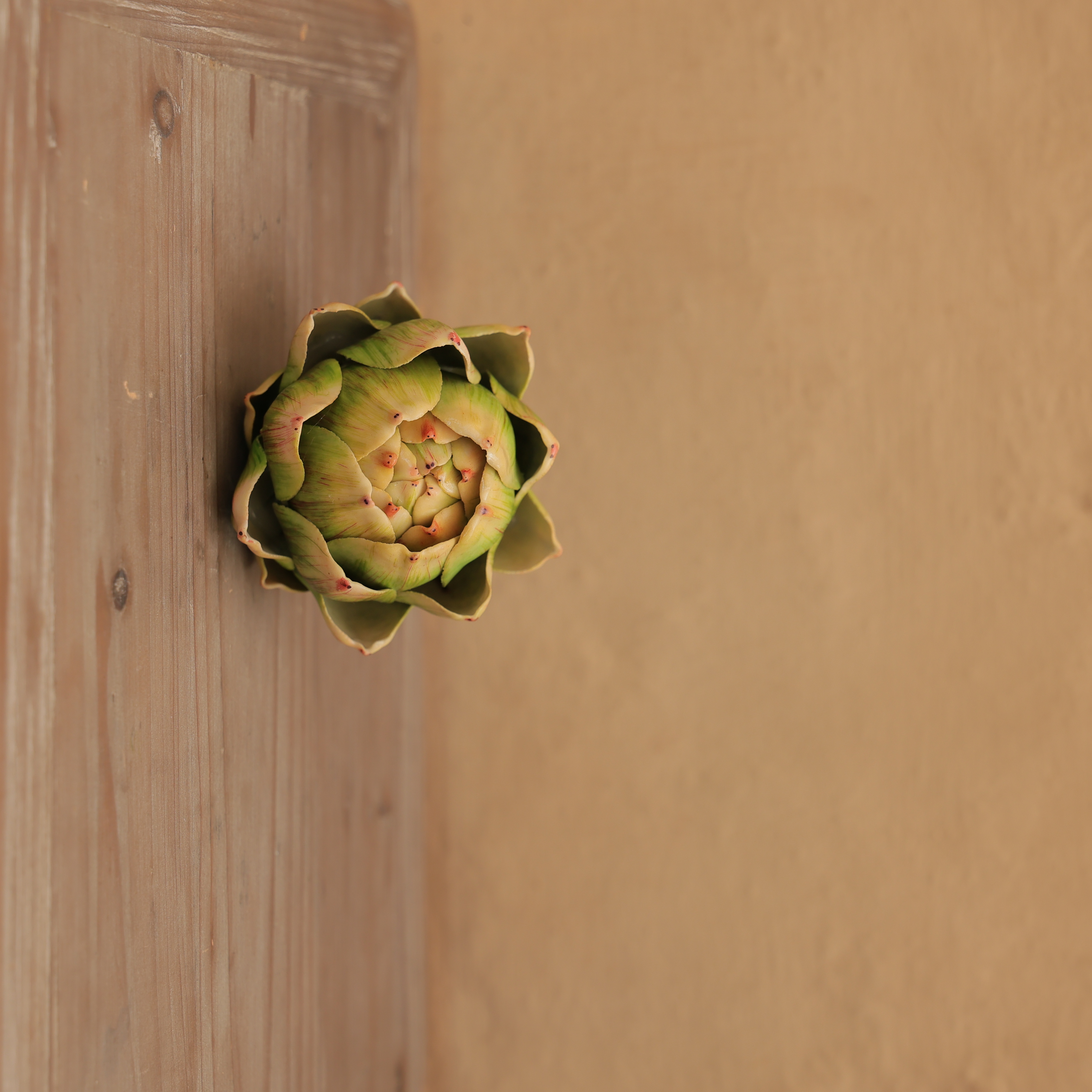 The Artichoke – ochre is a striking fusion of nature-inspired design and artisanal craftsmanship. Its sculpted form captures the intricate layers and textures of a real artichoke, finished in a soft ochre tone with muted golden-brown highlights. The result is a piece that radiates natural beauty and warmth, instantly elevating any decor setting with rustic sophistication. This piece is ideal for tabletop displays, coffee tables, or console arrangements, either as a standalone accent or as part of a curated cluster. Its earthy palette complements neutral and wooden interiors beautifully, making it a versatile addition to both modern and -inspired spaces. Whether used to create a harvest-themed vignette or as a year-round decorative detail, the Ochre Artichoke adds an effortless touch of texture and harmony to your home.