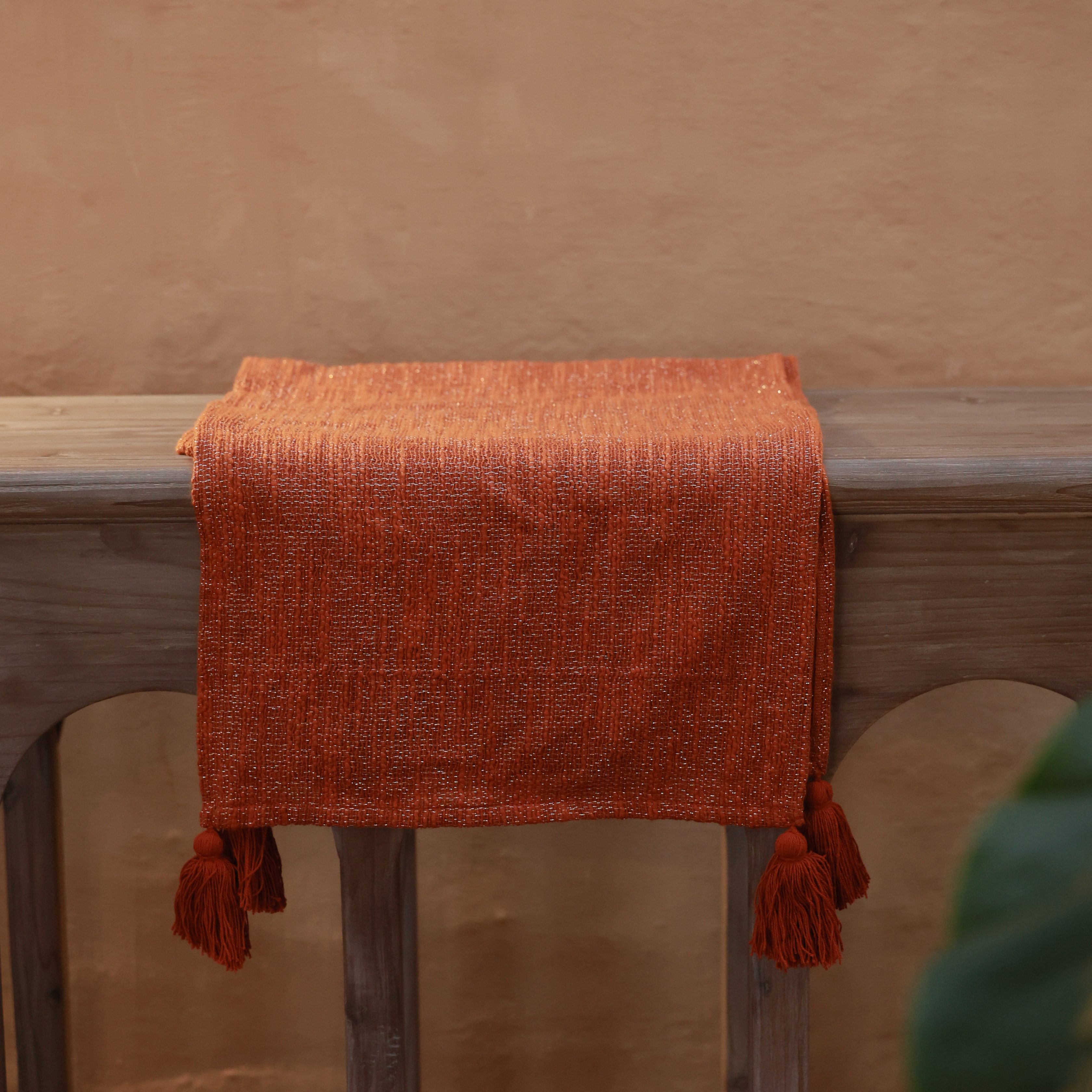 Bring warmth and elegance to your dining space with our Autumn Runner. Handwoven in rich earthy tones, this runner adds a cozy yet refined touch to your table setting. The subtle metallic threads woven through the fabric lend a gentle sheen, while the handcrafted tassels at each end add playful movement and texture.