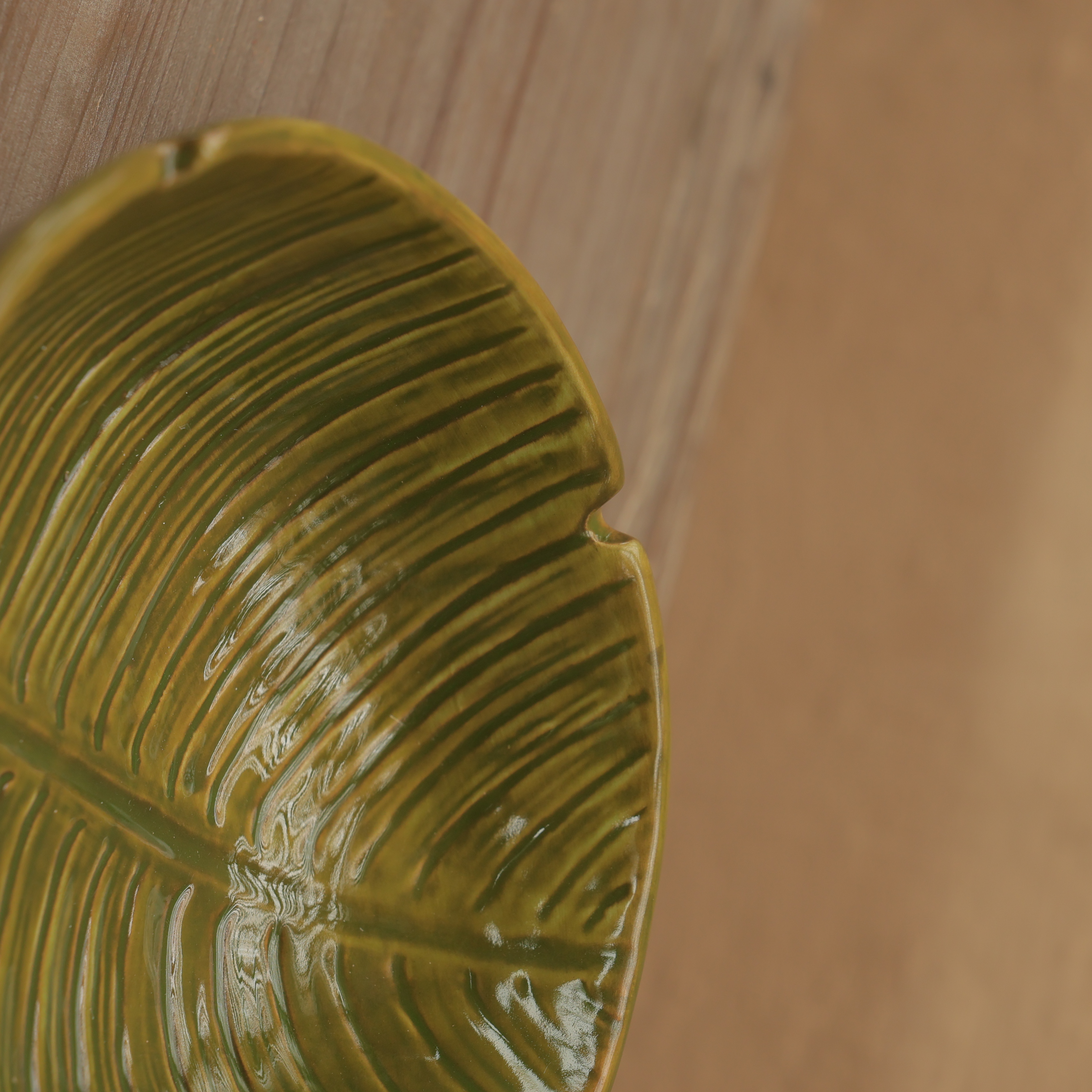 Inspired by the lush beauty of tropical foliage, the Banana Leaf Bowl is a striking piece that combines natural design with refined craftsmanship. Crafted with precision, it features a beautifully embossed banana leaf pattern that brings texture, depth, and a touch of exotic serenity to your table or decor arrangement. Finished in a rich, glossy green glaze, this bowl reflects light beautifully, adding a refreshing vibrancy to any space. Its organic design and sculpted edges make it ideal as both a decorative centerpiece and a functional serving bowl for fruits, potpourri, or festive treats. Whether used as a standalone accent or paired with other nature-inspired ceramics, the Banana Leaf Bowl evokes a harmonious connection to the earth, perfect for homes that celebrate natural textures and timeless design.