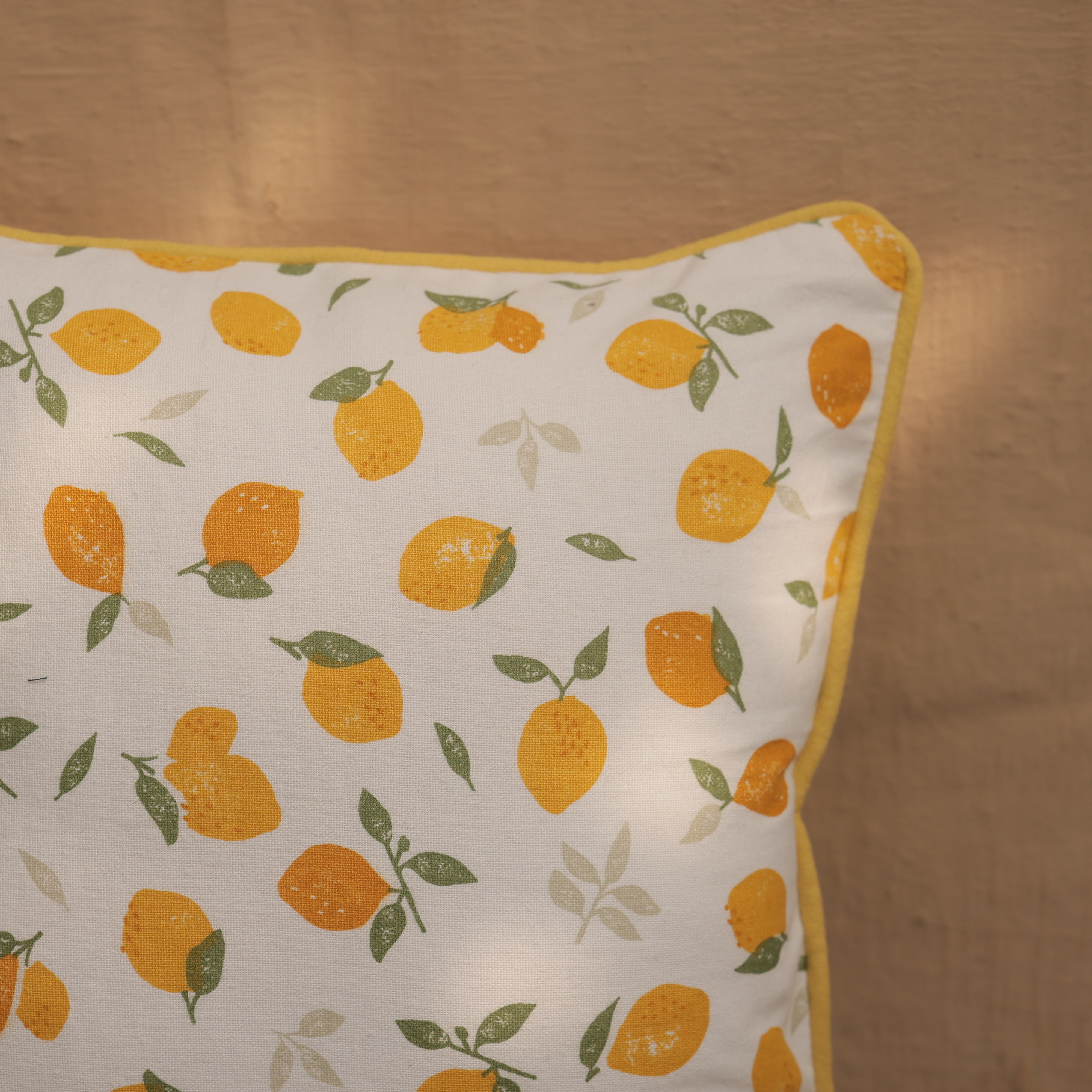 Bring a splash of sunshine and fresh orchard charm into your home with the Citrus Bloom Cushion Cover. Bursting with bright lemon motifs and soft green leaves, this design instantly uplifts any space with a lively, cheerful spirit, perfect for summer decor or adding a refreshing contrast year-round. Crafted from smooth, durable fabric, the crisp white background amplifies the vibrance of the citrus pattern, while the neatly finished edges in soft yellow add a sweet, polished touch. Its playful yet elegant aesthetic makes it a delightful accent for cozy nooks, patio seating, kitchens, or living room sofas.