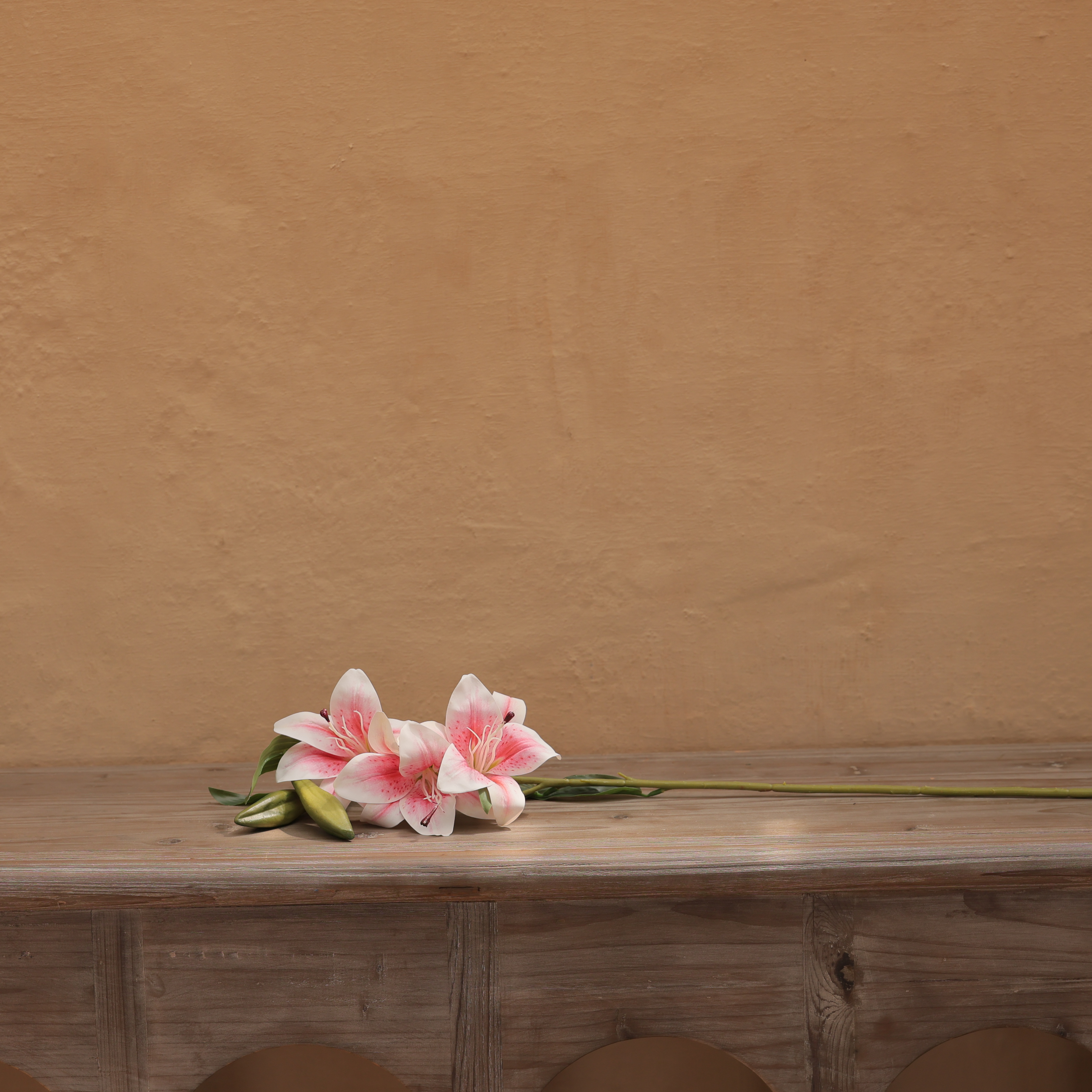 The Classic Lily Stem in Pink White captures the perfect balance between grace and vibrance. Each petal transitions from soft blush to creamy white, creating an airy, elegant aesthetic that feels fresh and refined. Its intricate design and realistic texture make it a versatile accent for modern, rustic, or classic interiors. Whether displayed in a glass vase or styled among neutral florals, this stem brings depth, balance, and natural charm to any arrangement. Its gentle hues reflect purity, softness, and understated luxury.