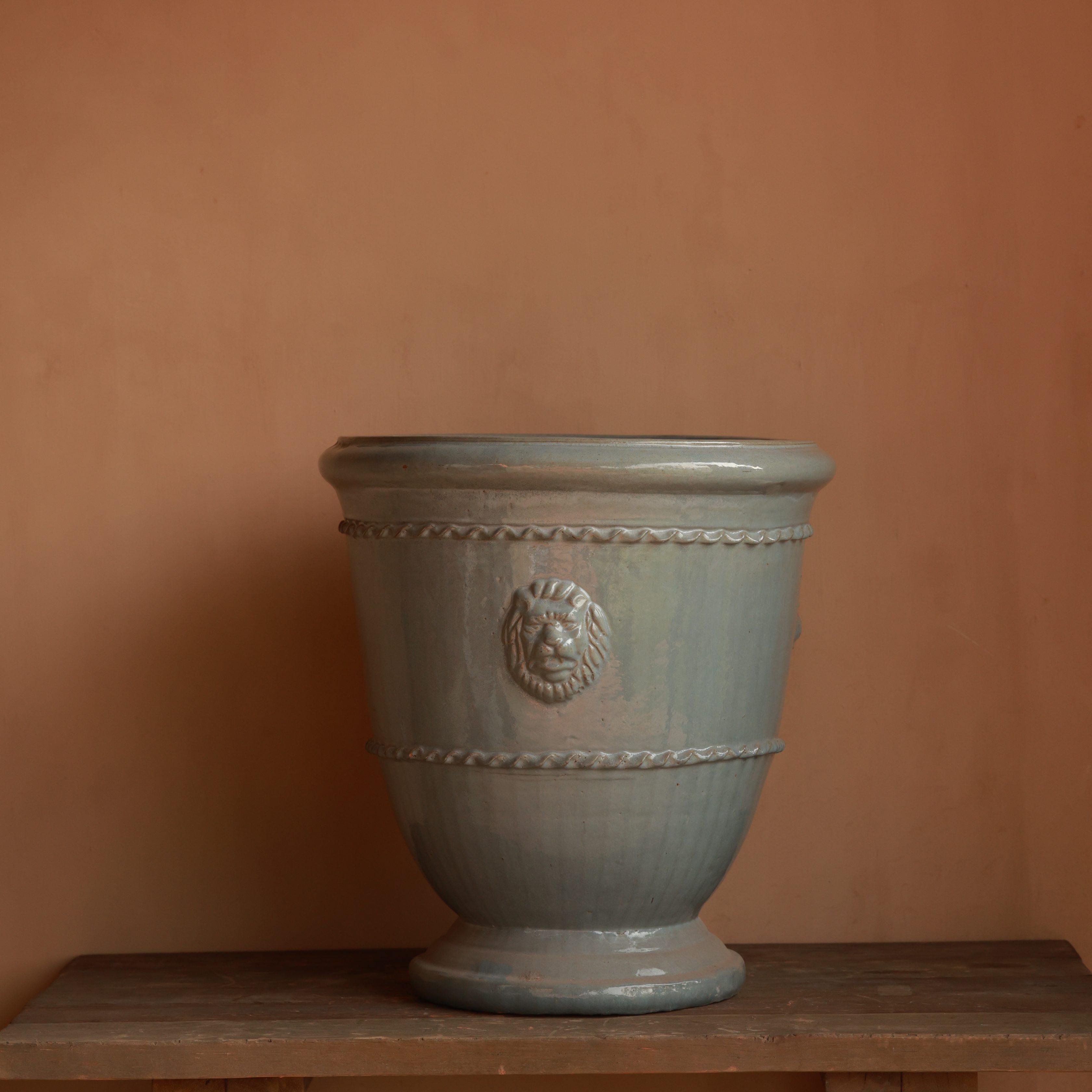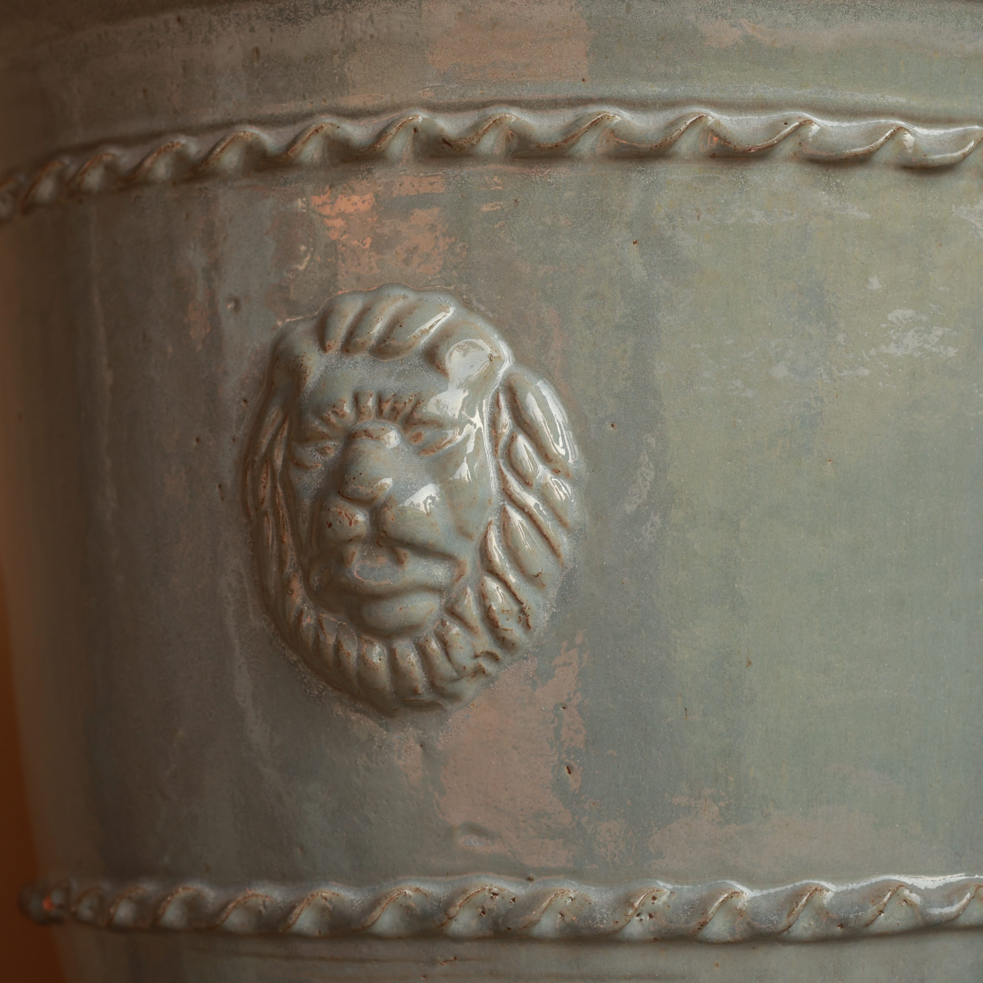 Classic elegance meets artisanal craftsmanship with a distinguished lion emblem. The subtle glazed finish enhances its refined appeal. Ideal for both indoor and outdoor décor.