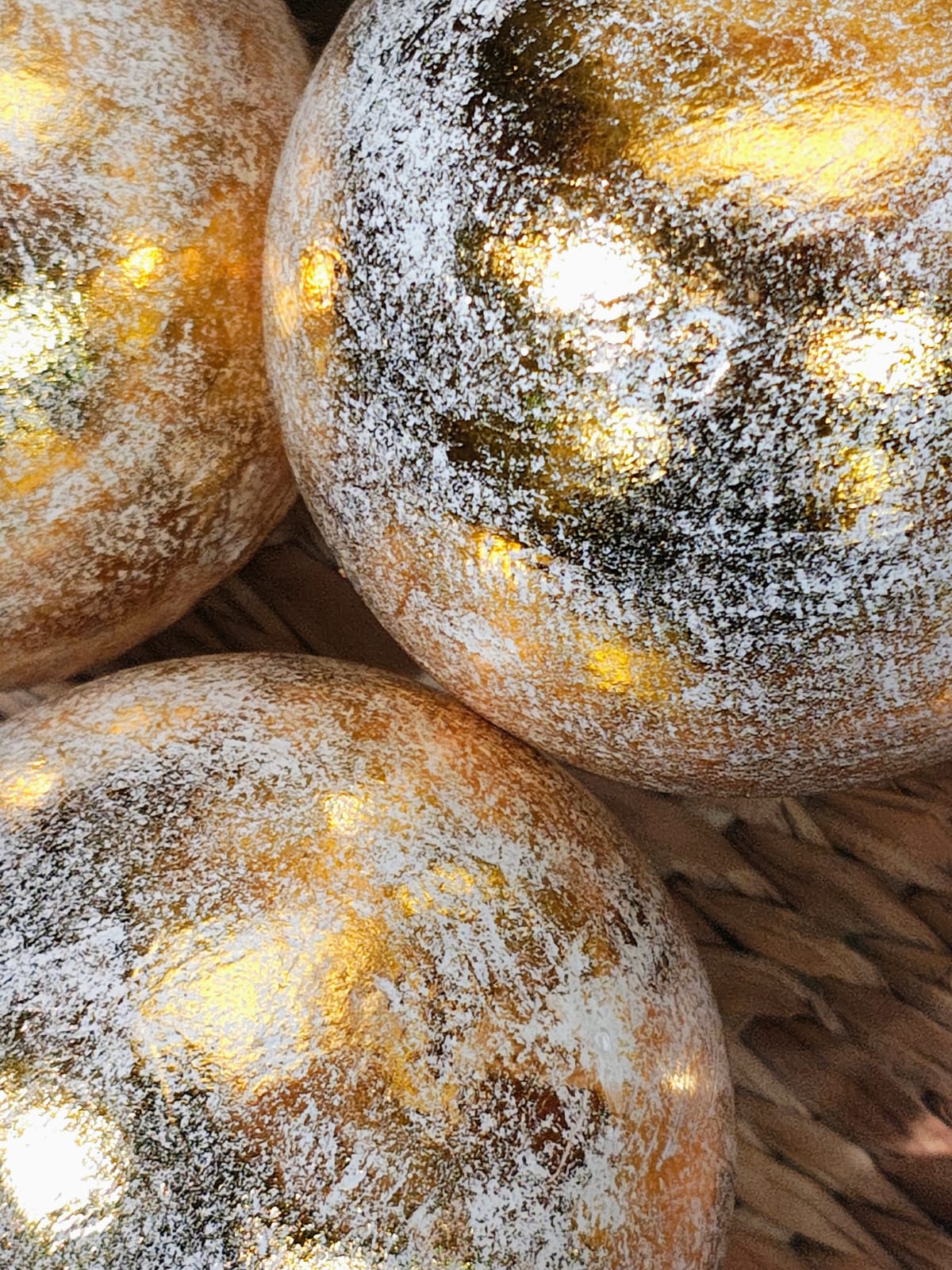 Illuminate your festive decor with the understated elegance of the Gilded Glow Ball. Featuring a radiant blend of antique gold and frosted white, this ornament captures the beauty of softly glowing candlelight reflected on winter snow. Its smooth, glass-like surface shimmers with a delicate metallic finish, adding a touch of luxury and warmth to your Christmas tree or holiday arrangements. The timeless design harmonizes beautifully with both traditional and modern d?cor palettes, creating a serene yet opulent holiday ambiance.
