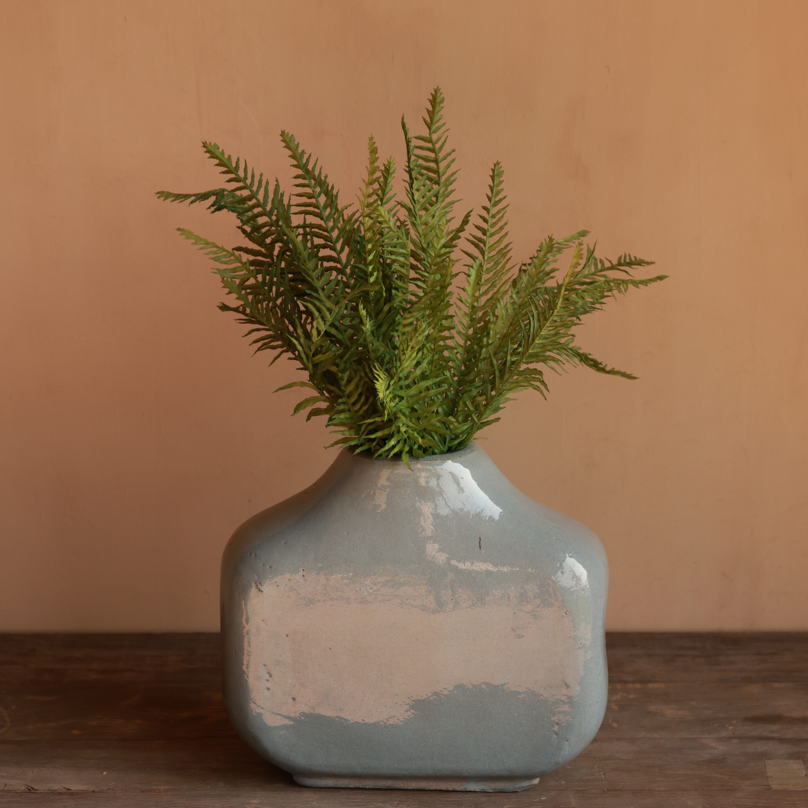 This modern vase features a sleek, square-rounded form with a smooth, glossy finish. Its muted earthy tones add a sophisticated touch to any space. Perfect for minimalist or contemporary décor.