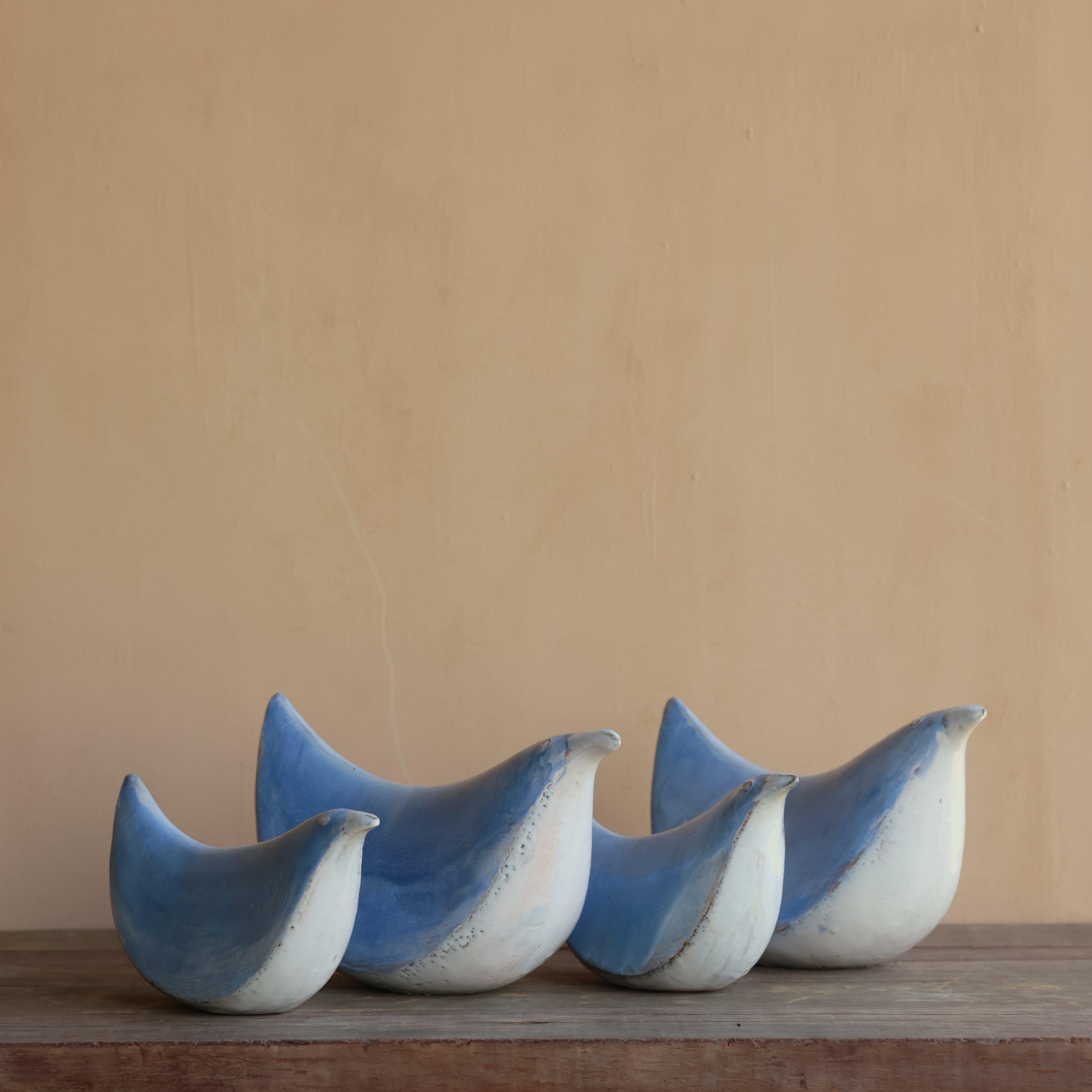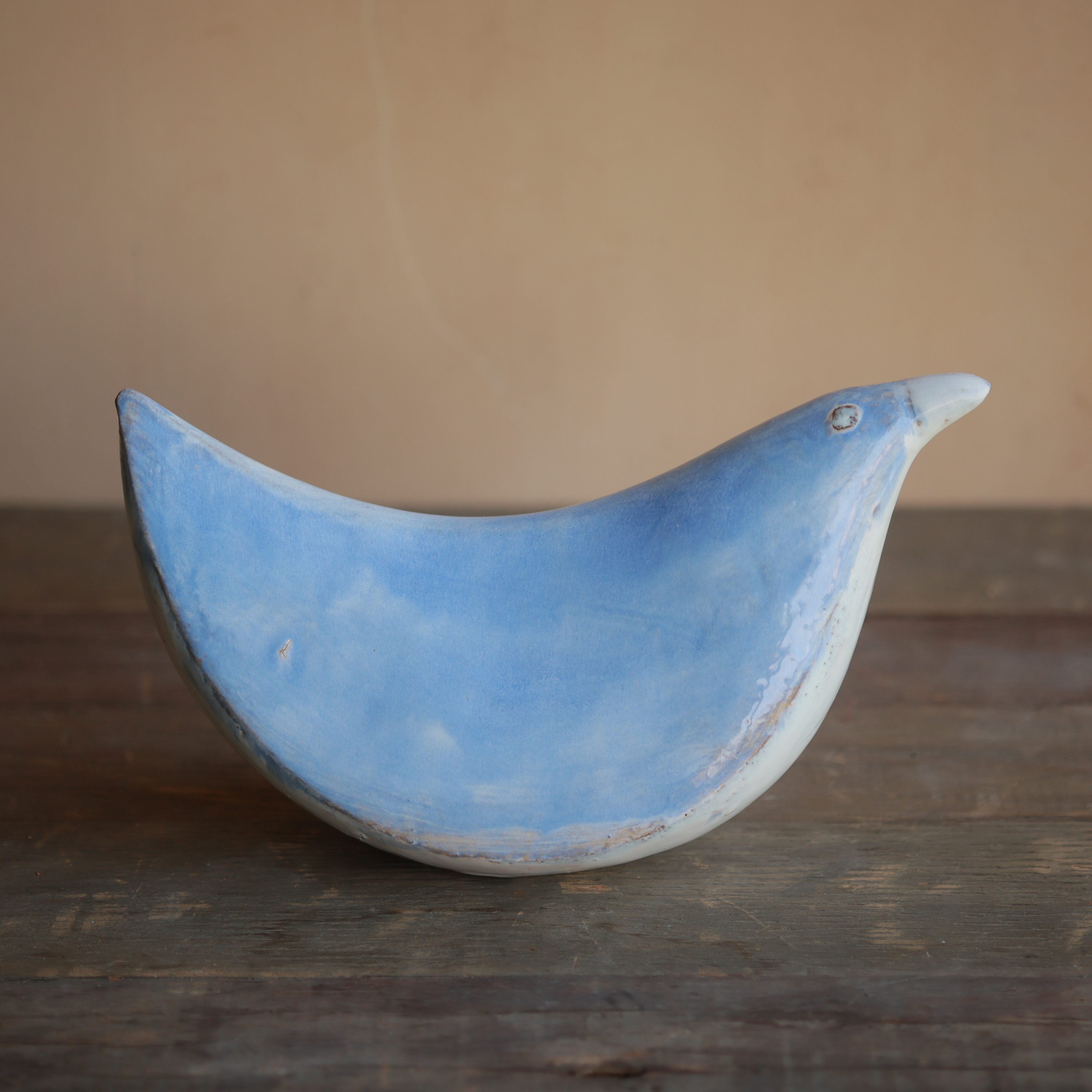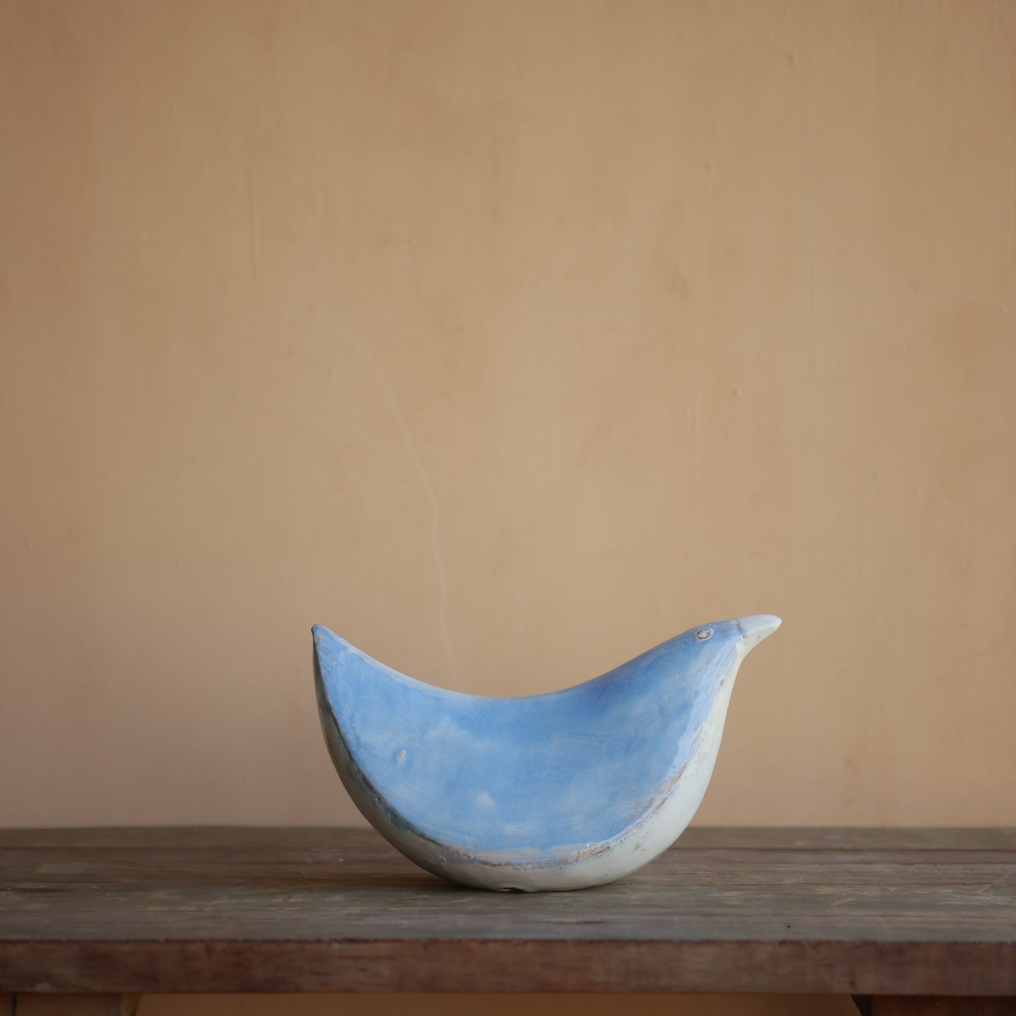 Add a touch of charm to your decor with this handcrafted blue ceramic bird bowl. Featuring a graceful, curved silhouette and a soft blue glaze, this unique piece blends artistry with functionality. Perfect as a decorative accent, a centerpiece, or for holding small items, it brings warmth and whimsy to any space.