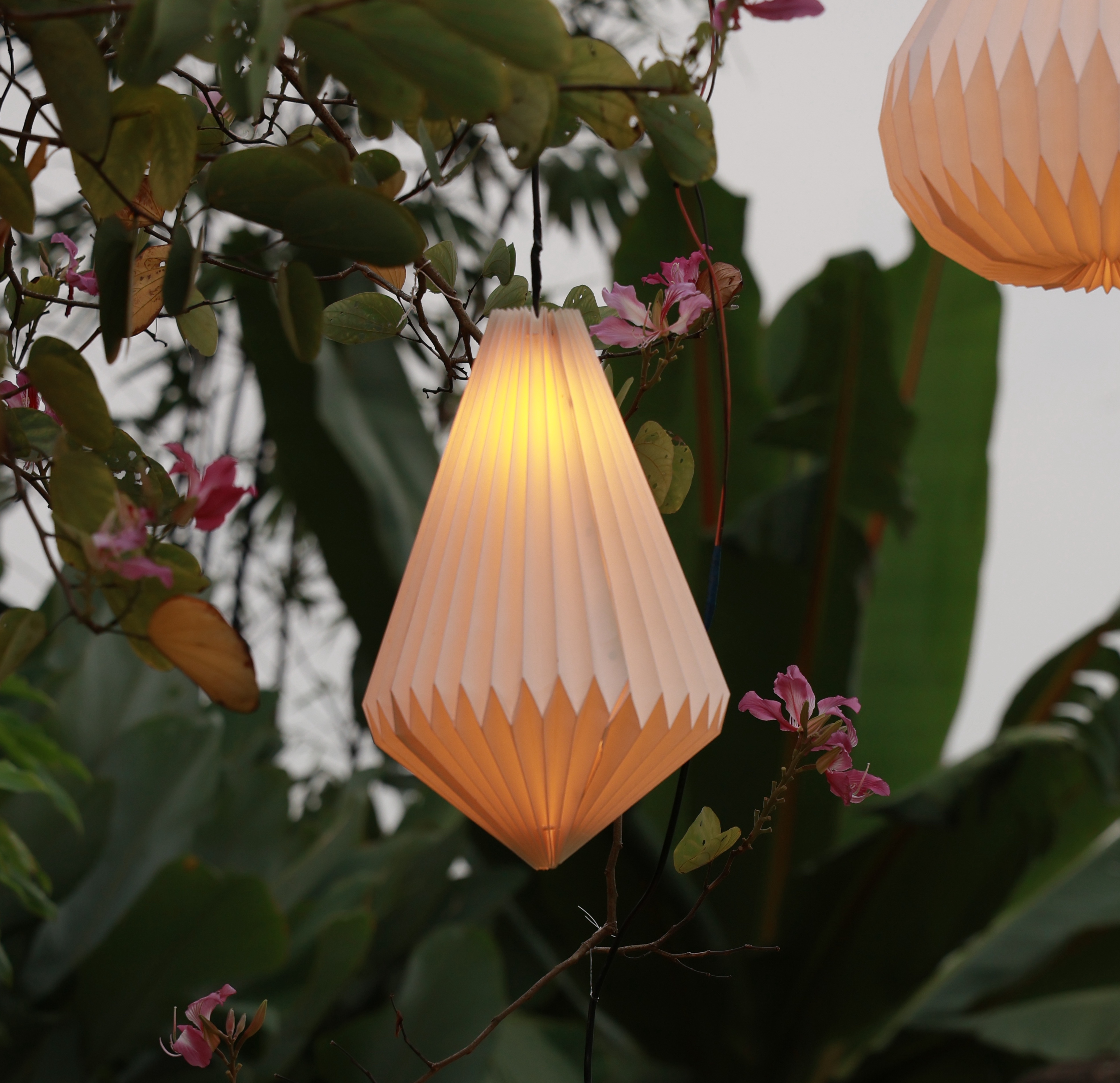 Create a magical atmosphere with our Ivory Sky Diamond Lantern, a beautiful blend of craftsmanship and simplicity. Hand-folded from fine parchment paper, its pleated form diffuses light softly, casting a warm, inviting glow that transforms any setting — from cozy corners indoors to dreamy outdoor evenings.