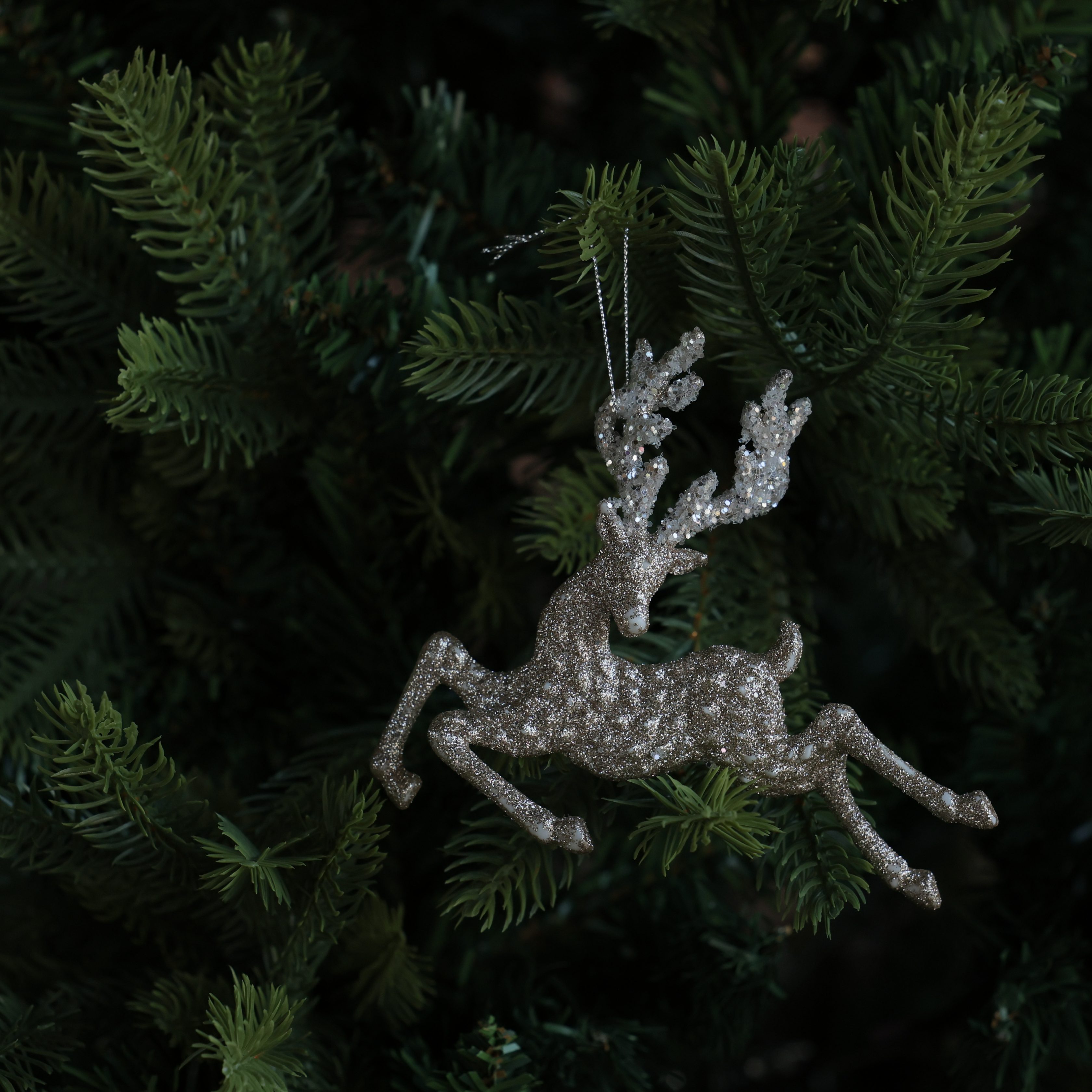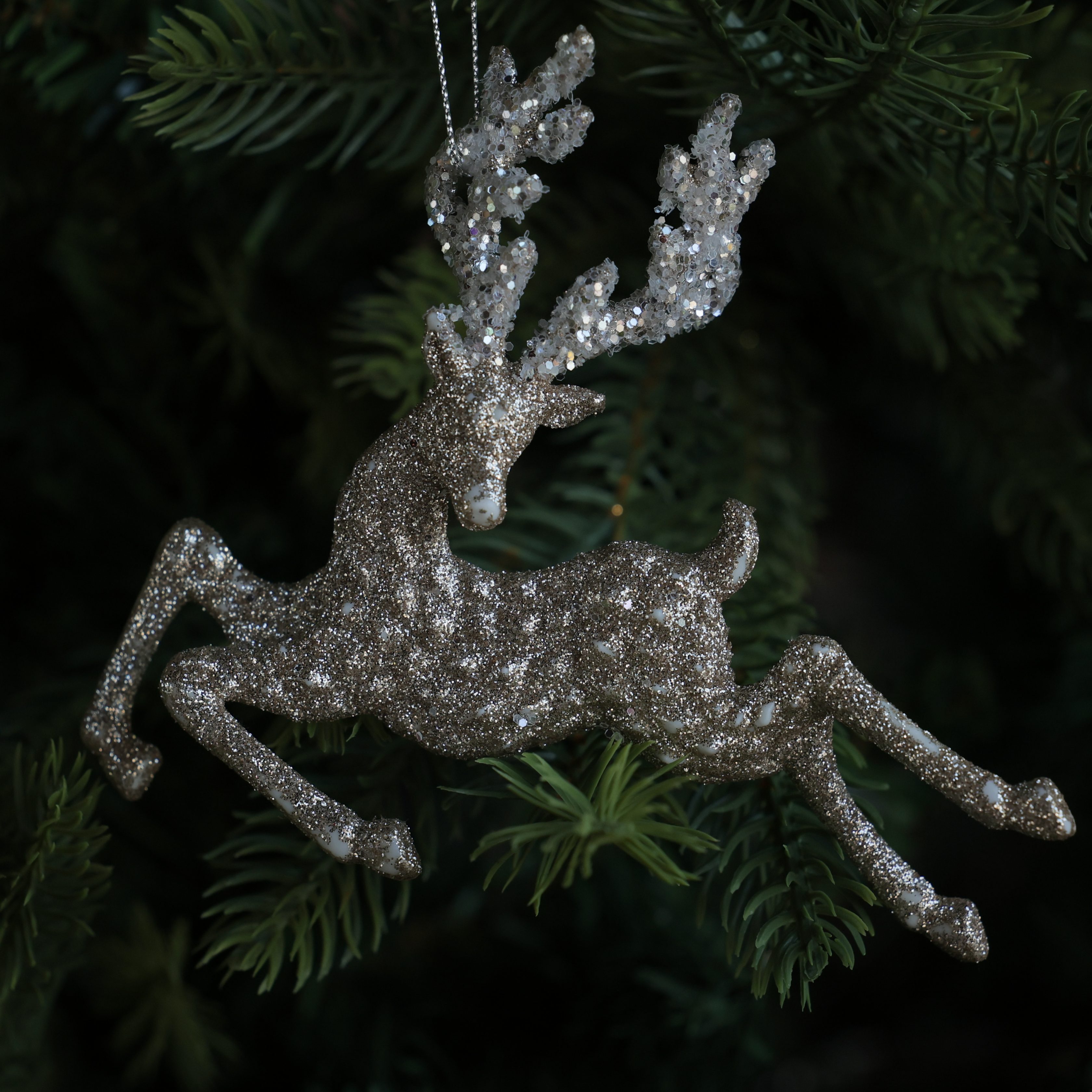 Add timeless elegance to your holiday d?cor with the Leaping Reindeer Ornament Set, a duo designed to embody the magic and motion of Christmas. Each reindeer features a beautifully sculpted body with fine lattice-like detailing and gracefully arched antlers, creating an eye-catching play of texture and light. Crafted in a rich metallic gold tone, these ornaments bring warmth and sophistication to your tree, garland, or festive display. Their lightweight structure ensures easy hanging, while the dynamic leaping pose adds a sense of movement and festivity. The shimmering finish captures ambient light beautifully, making them a stunning complement to both traditional and modern decor themes. Perfect as tree adornments, gift toppers, or part of a tabletop arrangement, the Leaping Reindeer set symbolizes joy, grace, and the magic of the holiday season.