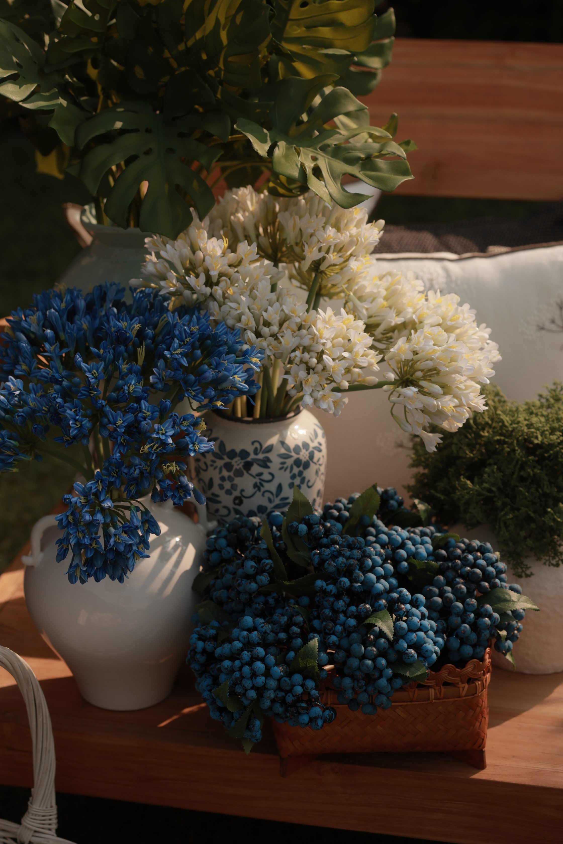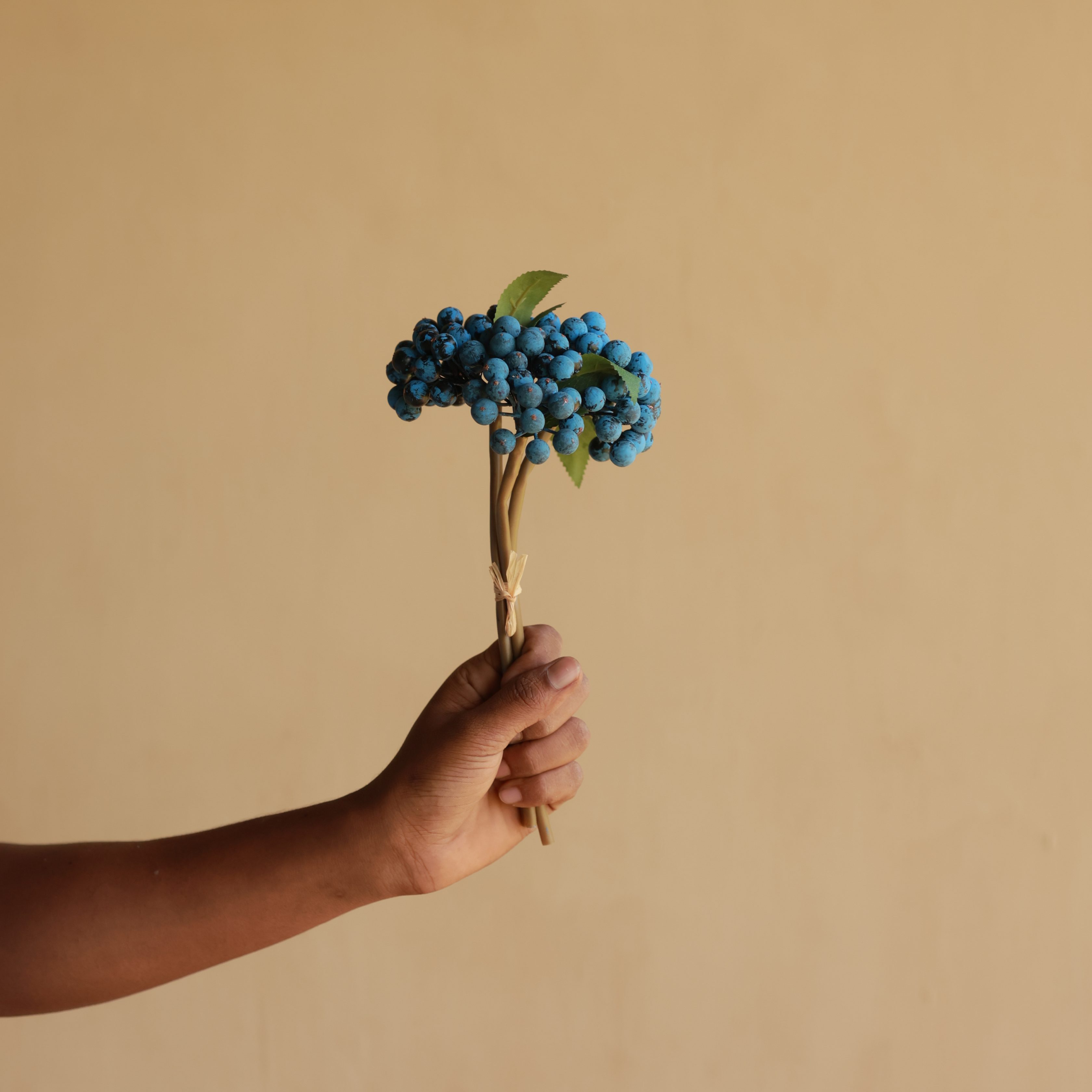 Add a pop of vibrant color to your decor with this realistic faux blue berry stem! Featuring clusters of detailed blue berries, accented with lush green leaves and a flexible stem, this piece is perfect for enhancing floral arrangements, wreaths, centerpieces, and seasonal decor.