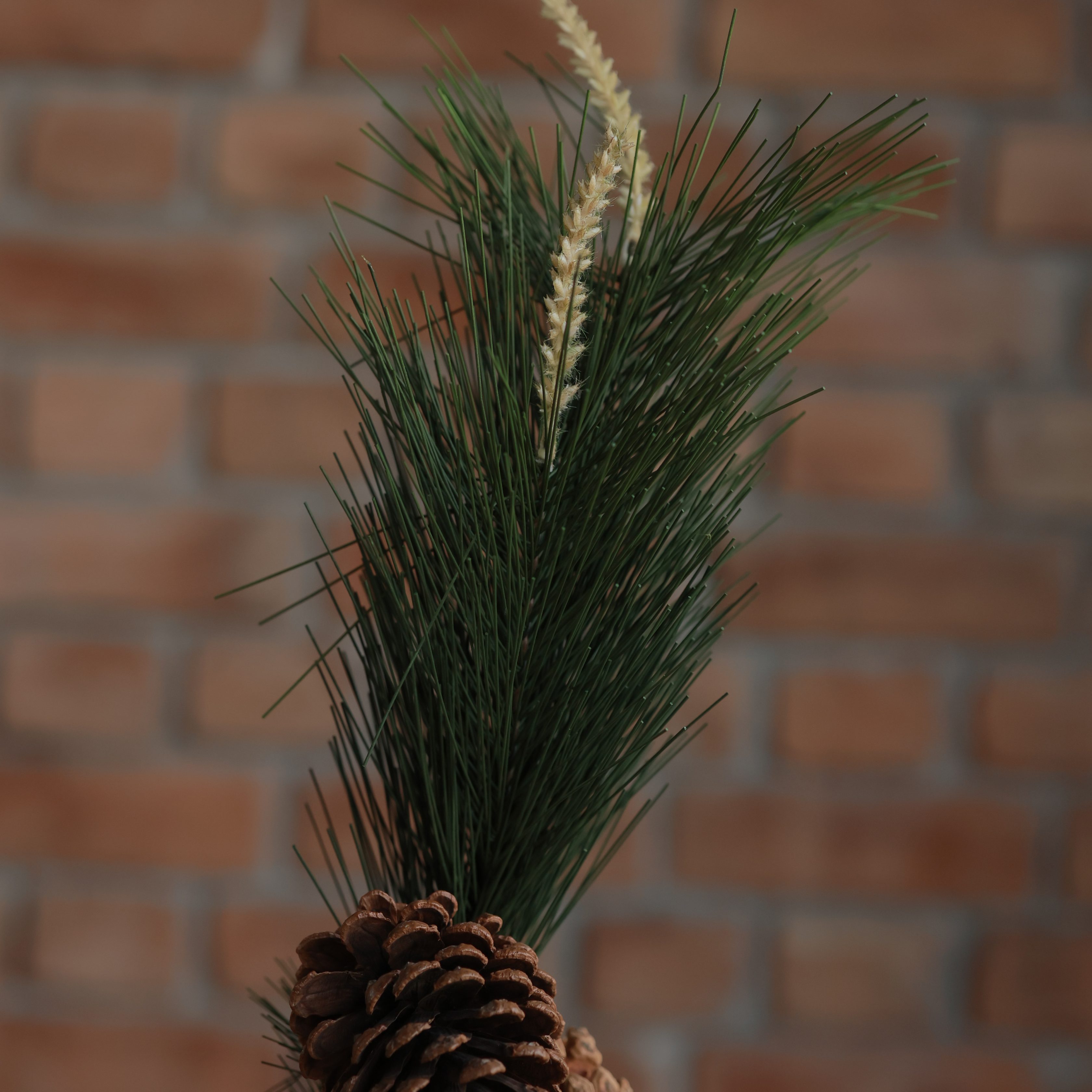 The Pine Spray embodies the peaceful essence of nature, crafted to capture the authentic beauty of freshly gathered evergreens. With its slender, realistic pine needles and naturally textured pinecones, this piece adds depth, texture, and rustic character to your seasonal décor. Perfect for vase arrangements, mantel styling, or as an accent in wreaths and garlands, the Pine Spray serves as a versatile décor element that complements both traditional and modern spaces. Its earthy tones and natural form evoke the serenity of woodland landscapes, making it ideal for creating cozy, nature-inspired compositions throughout the winter season. Whether used as a standalone display or paired with berries, candles, and greenery, the Pine Spray brings a touch of forest tranquility and festive warmth to your home.