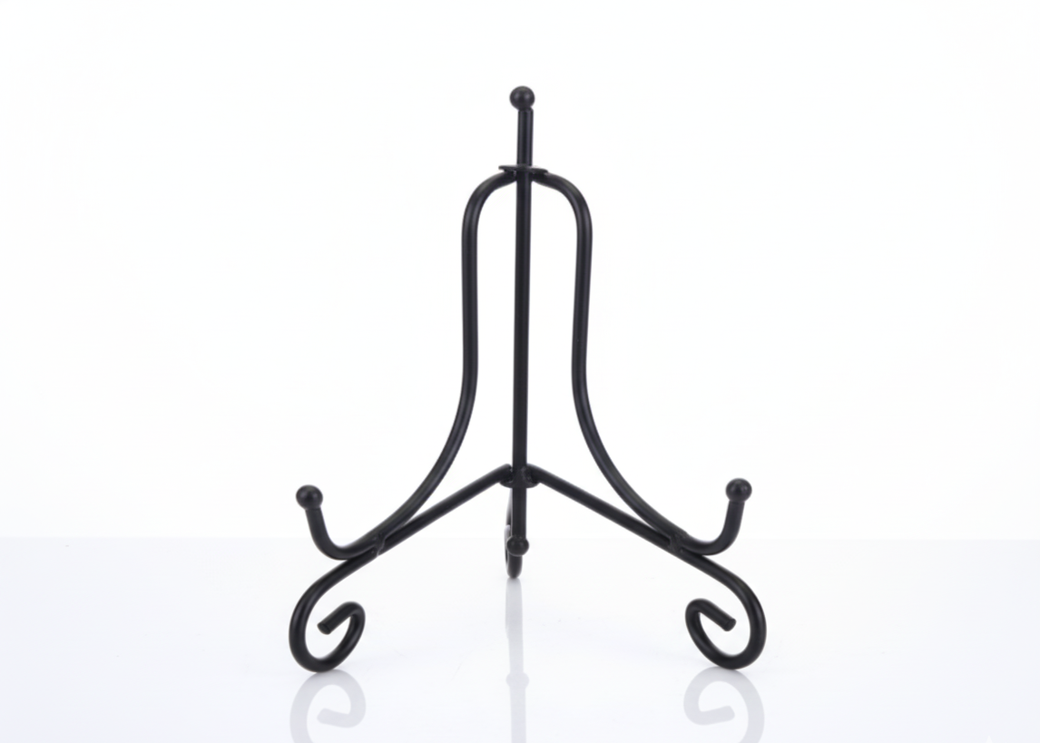 Elevate your display with the Classic Plate Stand, a sleek and functional accent designed to complement both traditional and modern decor styles. Crafted with sturdy metal and finished in matte black, this stand features a graceful scrollwork design that adds a touch of understated elegance while securely supporting plates, photo frames, or decorative pieces. Perfect for showcasing your cherished ceramic plates, artwork, or collectibles, the stand?s compact size makes it ideal for countertops, shelves, or display cabinets. Its stable base and minimalist silhouette ensure that the focus remains on your displayed piece, making it a practical and stylish choice for homes, galleries, or retail displays alike.