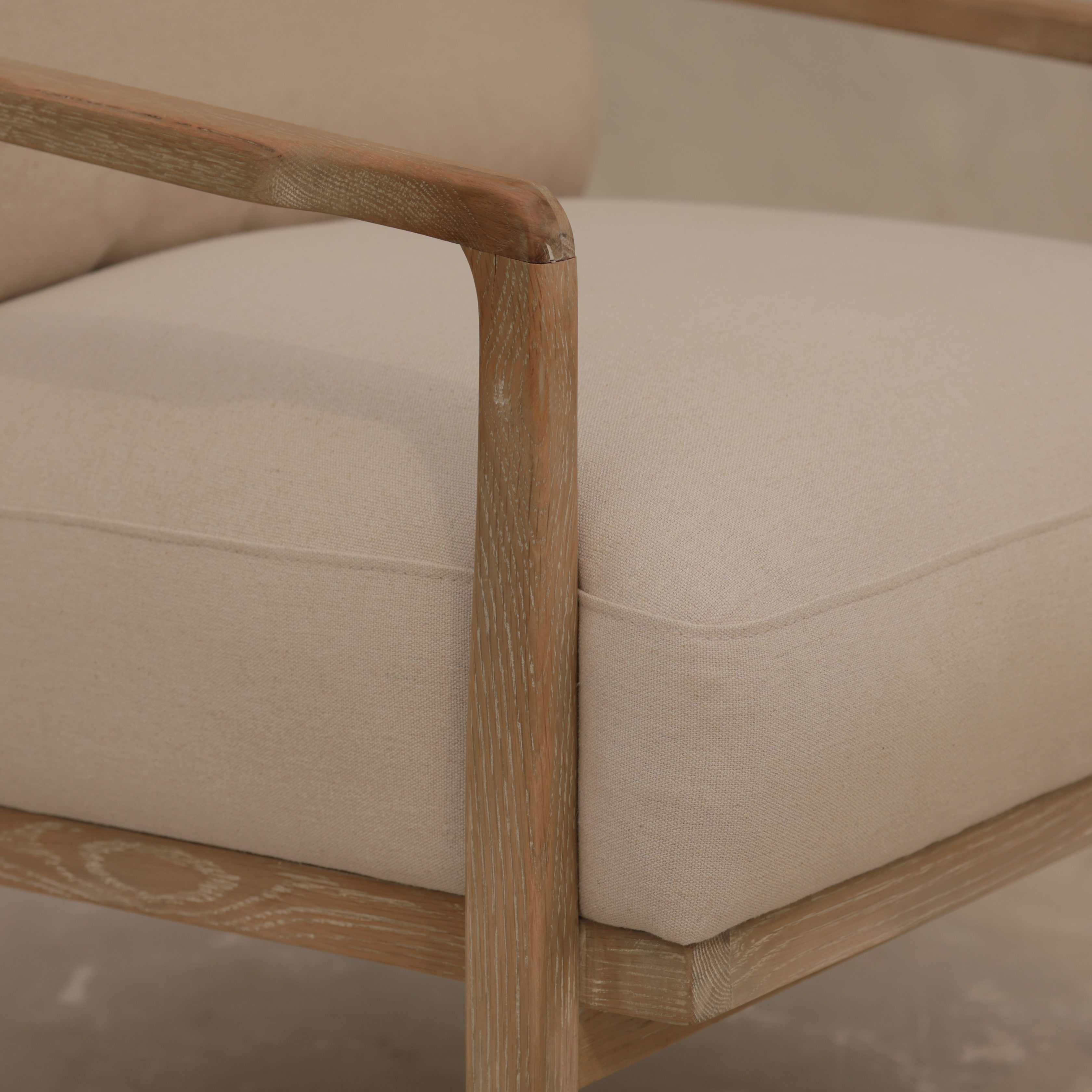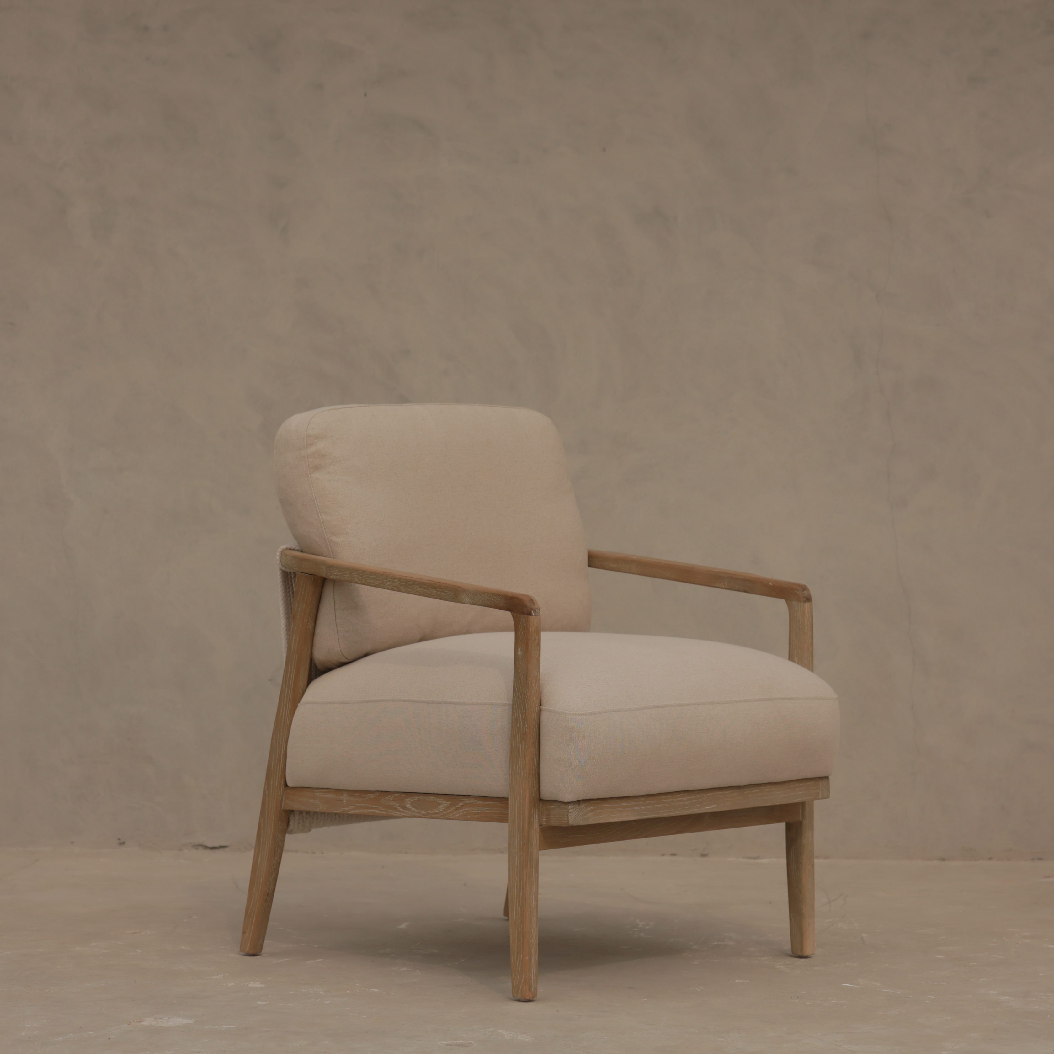 Experience the perfect blend of comfort and craftsmanship with this elegantly designed lounge chair. Featuring a solid wood frame with a warm, natural finish, its clean lines and gently curved armrests offer timeless appeal. The plush, upholstered cushions provide exceptional support, making it an inviting addition to any living space, reading nook, or lounge area.