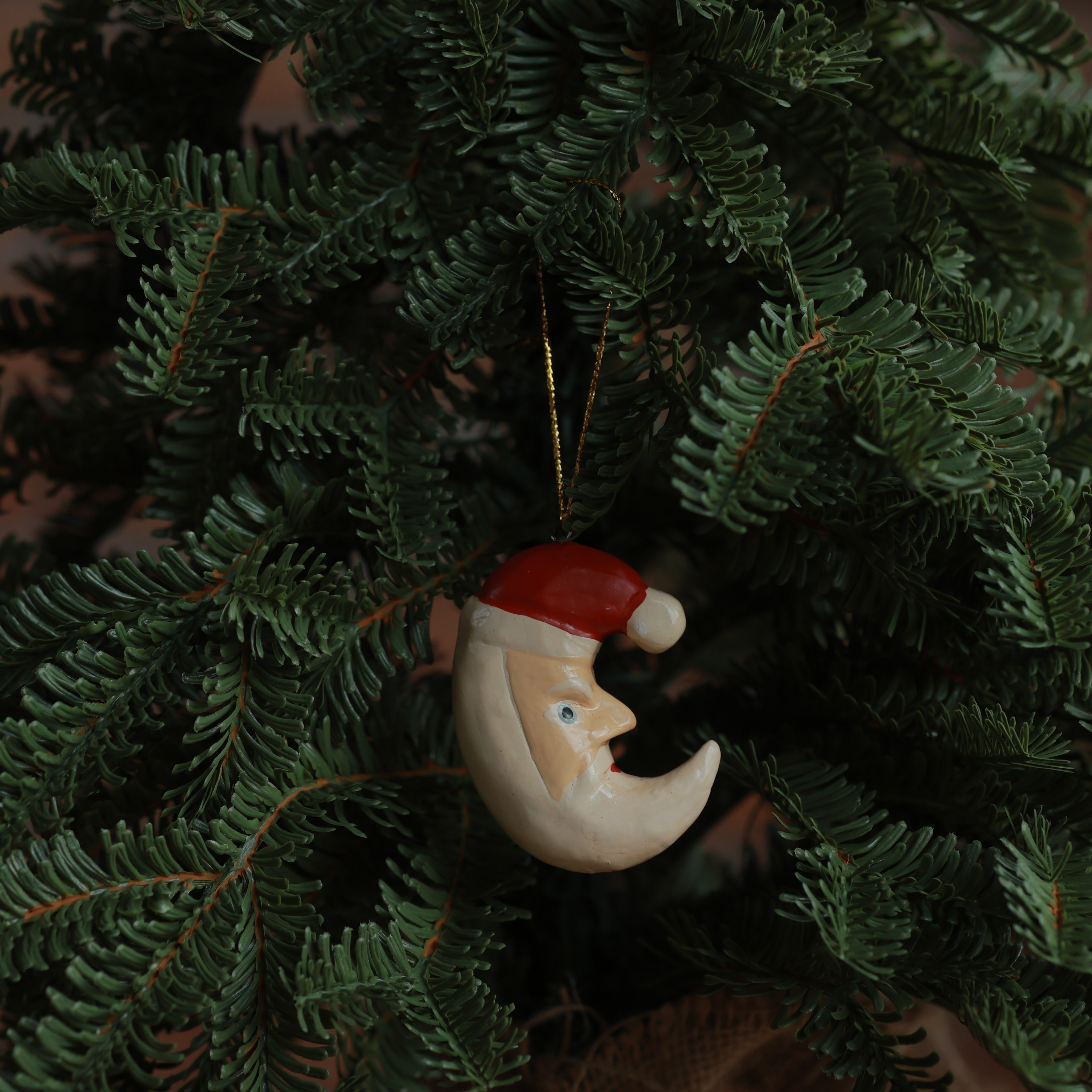 Bring a touch of whimsy and celestial charm to your Christmas d?cor with the Santa Moon Ornament, a delightful blend of festive imagination and classic holiday warmth. Featuring Santa?s cheerful face nestled into a crescent moon, this ornament captures the magic of Christmas night, a gentle nod to nostalgia, wonder, and childlike joy. Crafted from lightweight, durable material, each piece showcases intricate details in soft ivory and festive red tones, beautifully complemented by a subtle golden string for effortless hanging. The smooth, curved silhouette creates a serene yet playful aesthetic, making it an enchanting addition to your Christmas tree, garland, or wreath display. The Santa Moon Ornament perfectly balances elegance and whimsy, making it ideal for both traditional and contemporary d?cor themes. Whether displayed on its own or paired with other celestial or Santa-themed accents, it brings a storybook charm that instantly brightens any festive setting.