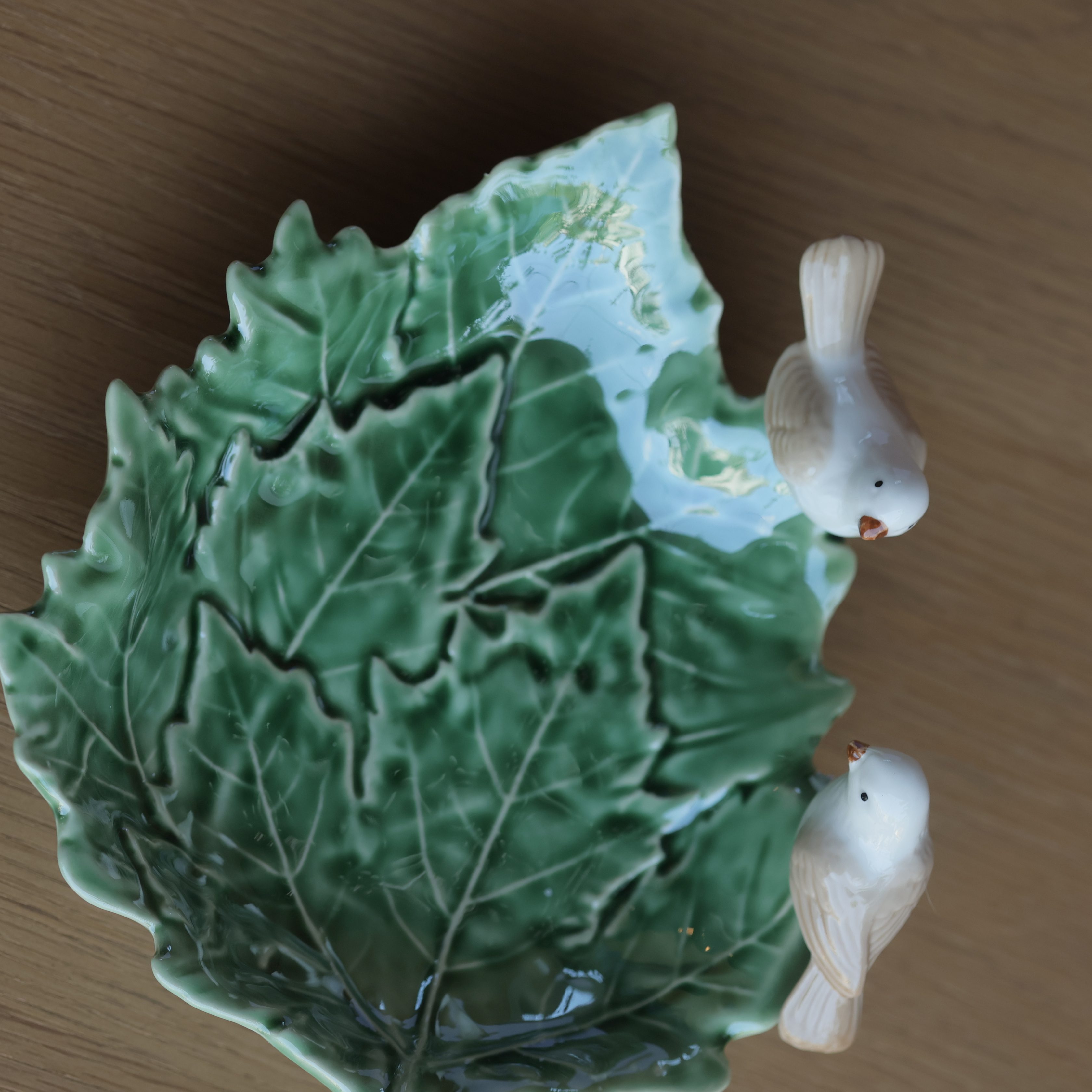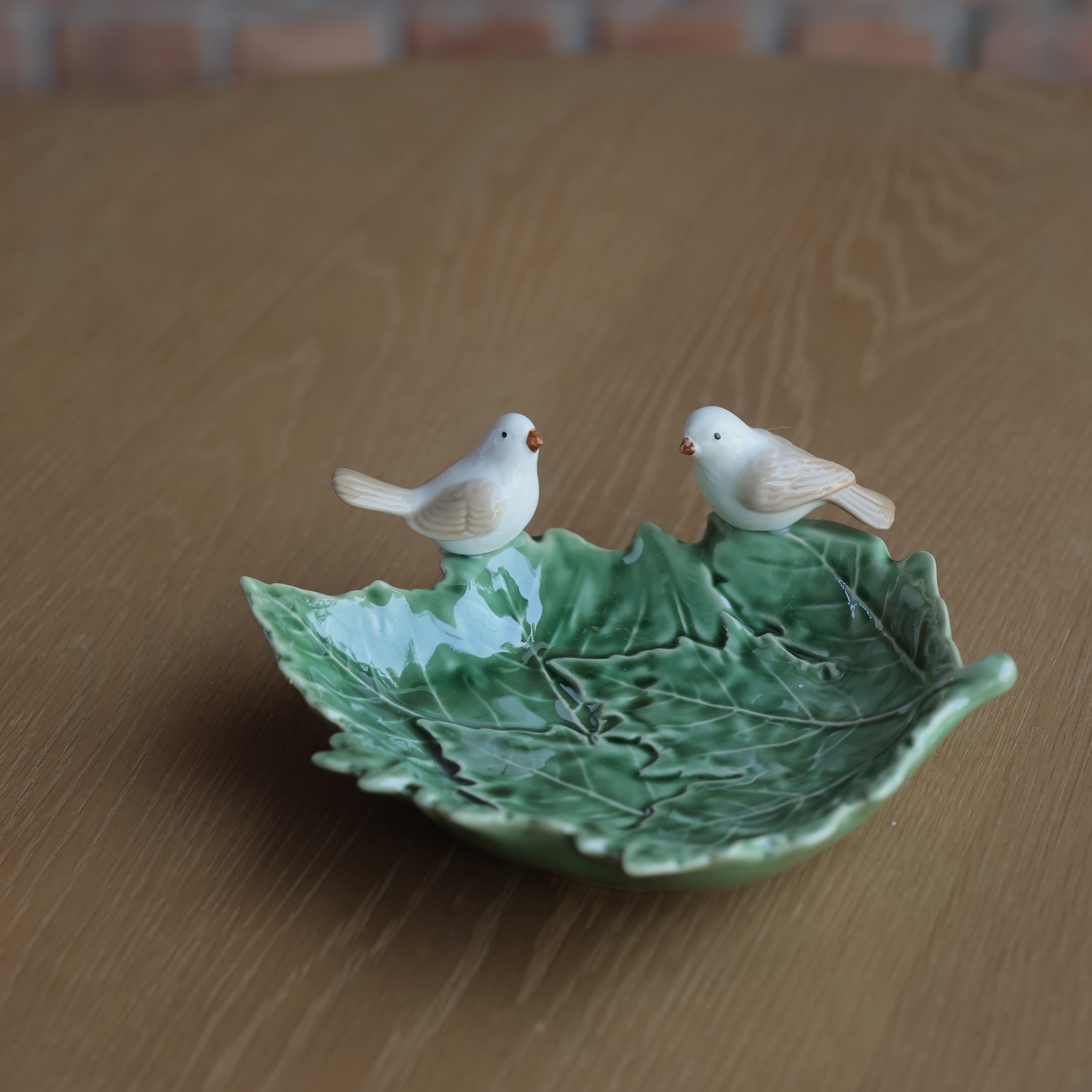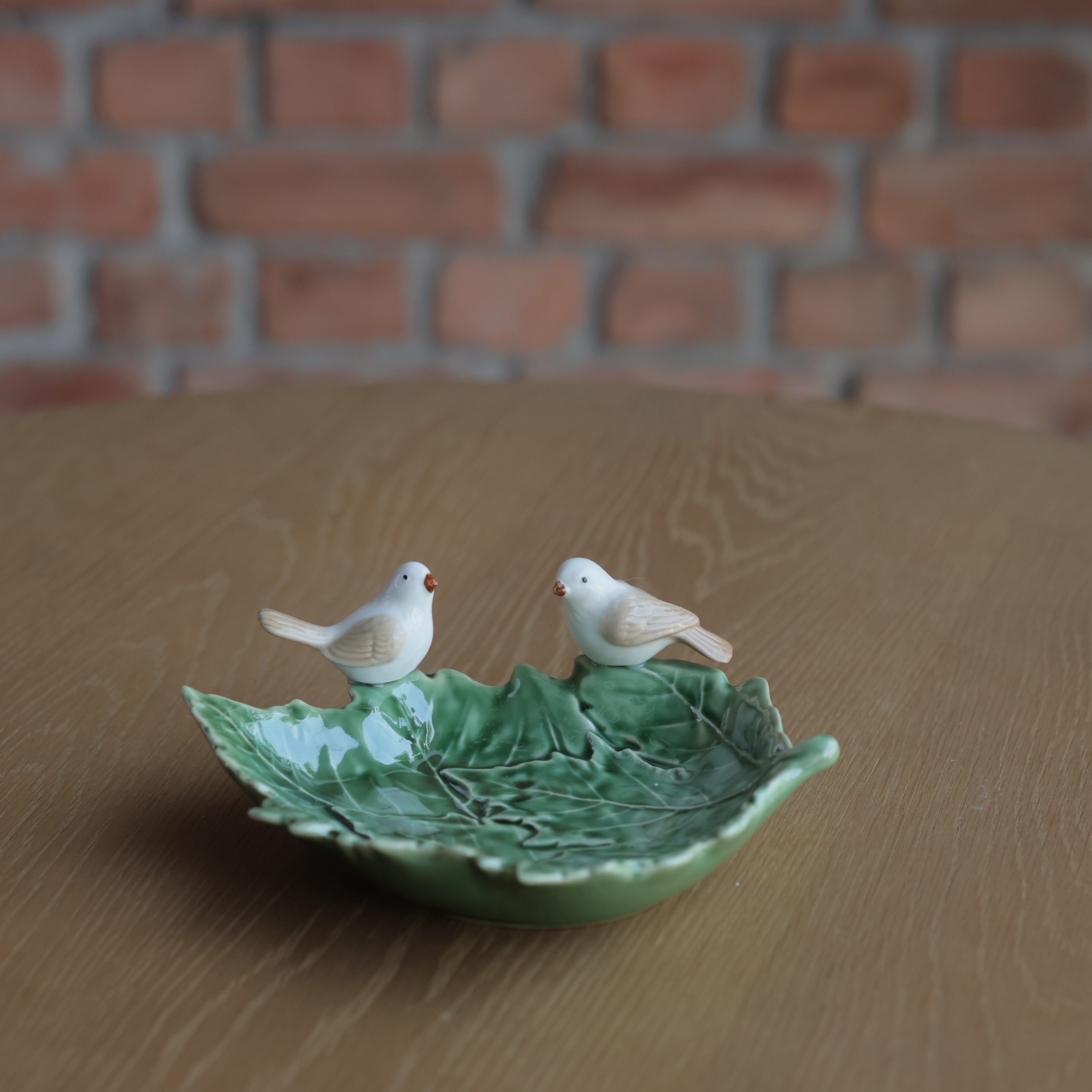 Bring the beauty of nature to your table with our Songbird Leaf Platter. Crafted in the shape of a lush green leaf and adorned with two perched white songbirds, this ceramic platter is a blend of elegance and charm. Perfect for serving appetisers, snacks, or sweets, it also makes a delightful decorative accent for your dining or coffee table. A piece that celebrates harmony with nature, it?s ideal for both everyday gatherings and festive occasions.