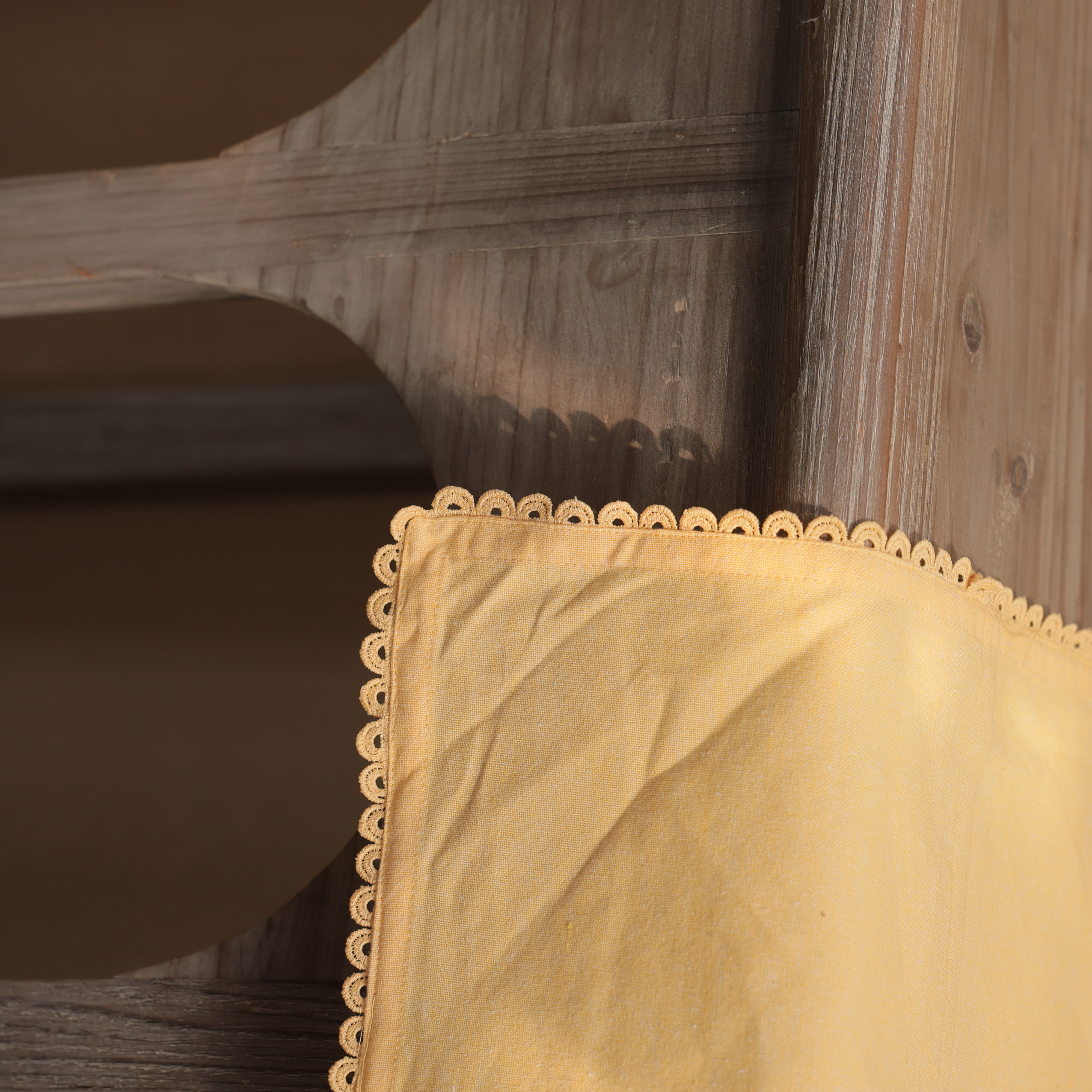 Warm, cheerful, and effortlessly elegant, the Sunlit Yellow Napkin brings a soft glow to your table setting. Rendered in a gentle golden-yellow hue, this napkin evokes the warmth of sunlight filtering through a calm afternoon, adding a welcoming and uplifting touch to everyday meals and special gatherings alike. The color is vibrant yet refined, making it easy to pair with neutral tableware, rustic settings, or layered festive arrangements. Crafted from a natural cotton-blend fabric, the napkin features a subtle woven texture that lends depth and a tactile charm to its surface. The fabric drapes beautifully while maintaining enough structure to keep a neat, polished look on the table.