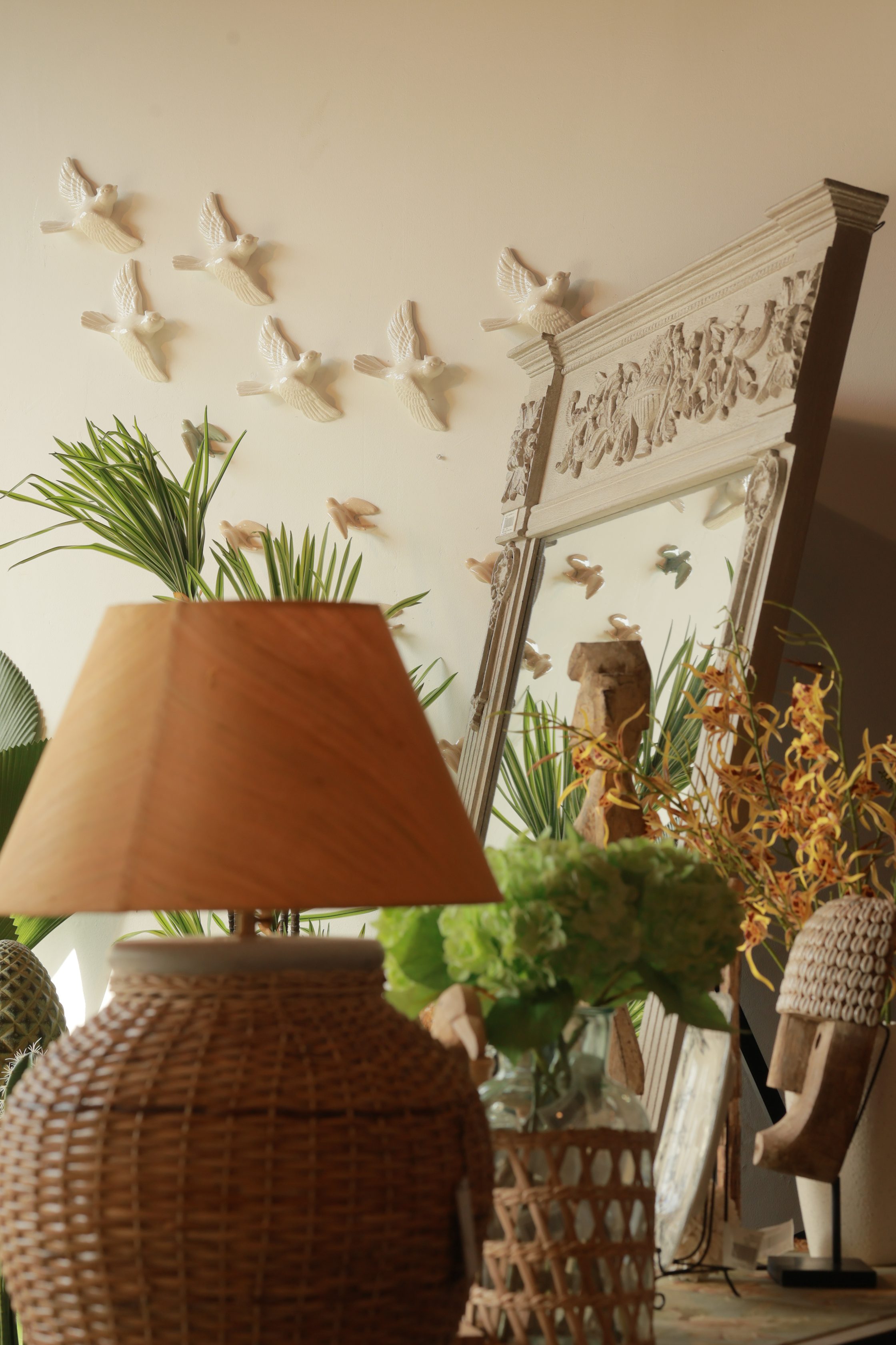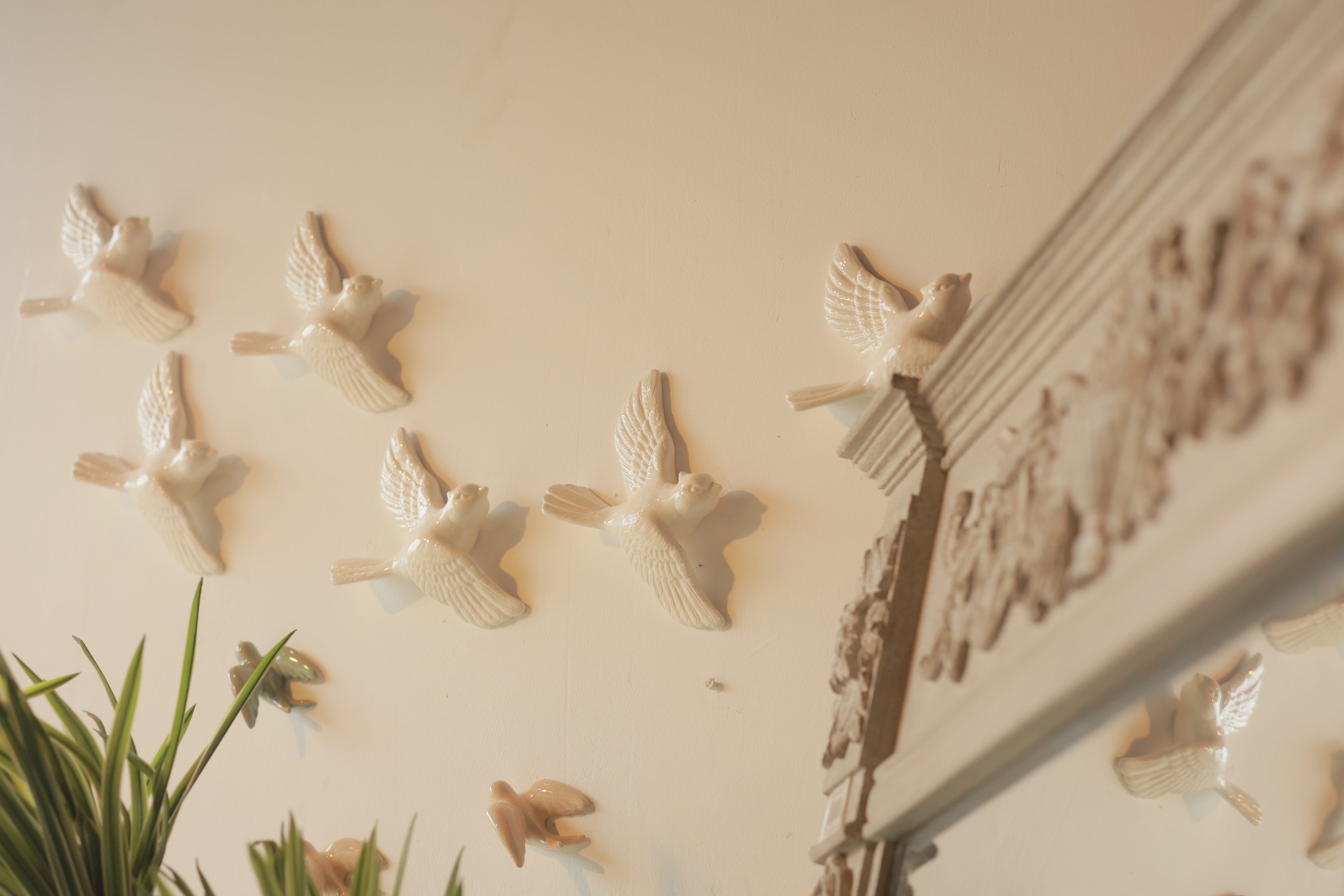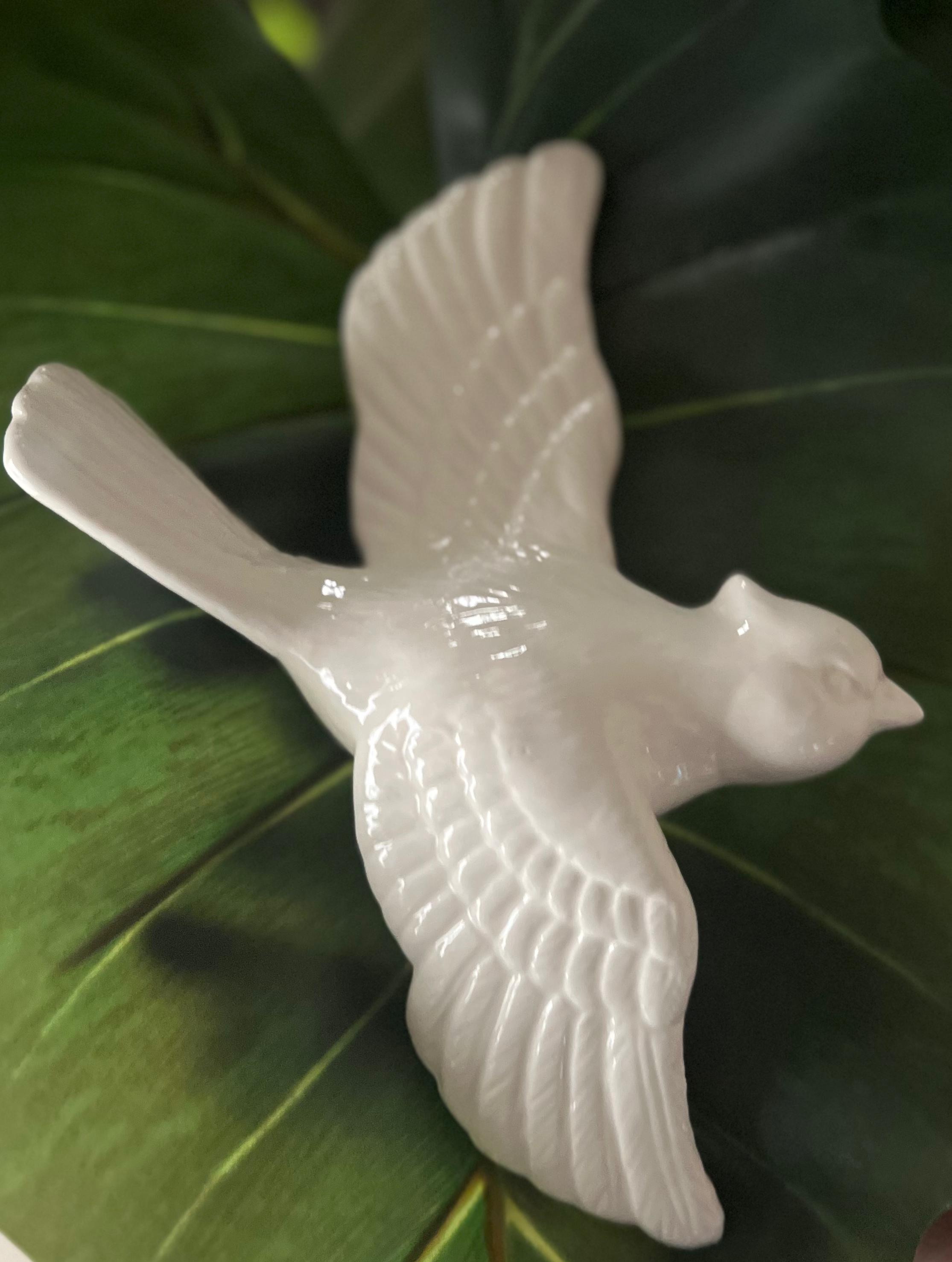 Beautiful porcelain birds in flight give any wall a refined, organic beauty. A calm and beautiful accent piece for earthy, contemporary spaces.