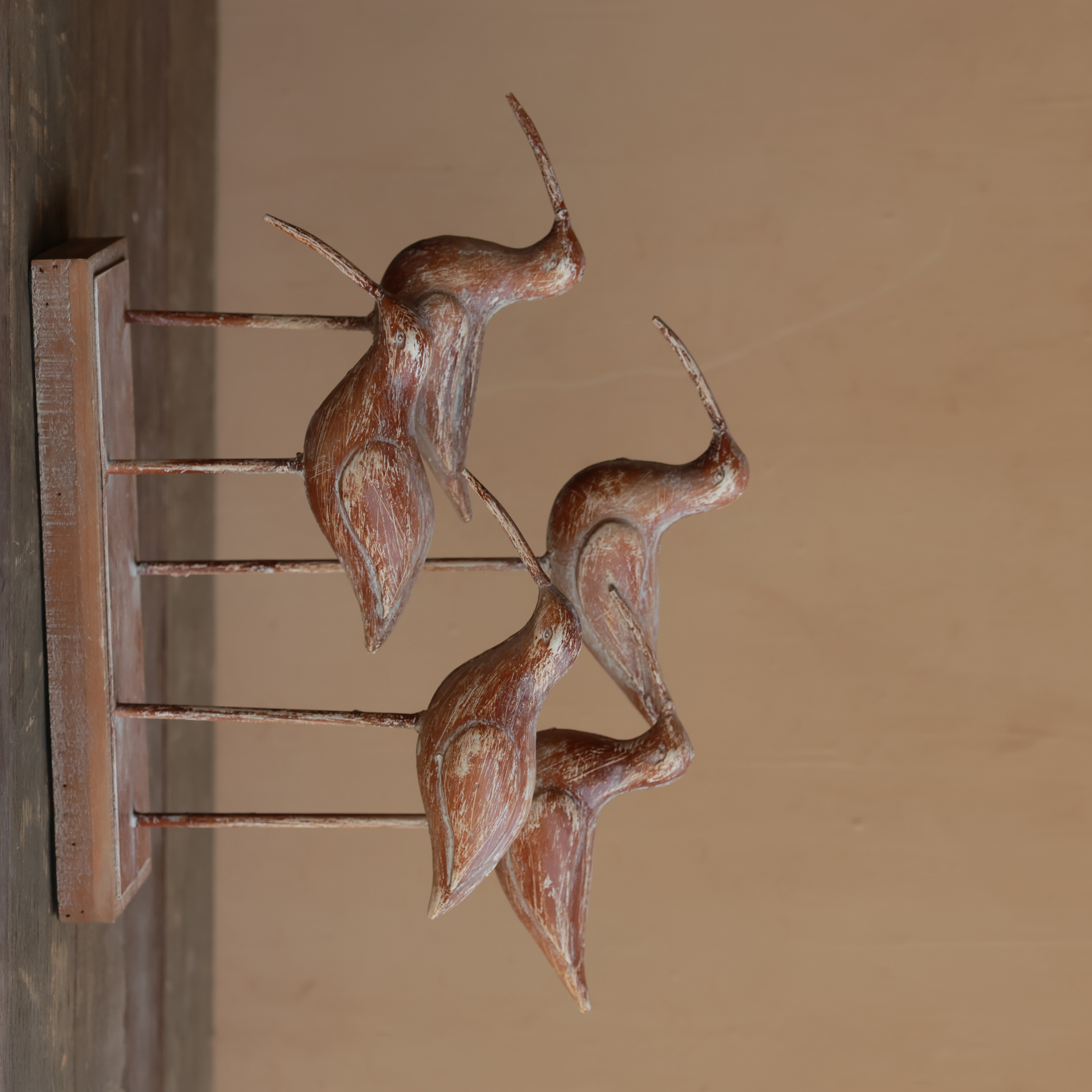 Capture the serene beauty of coastal wildlife with this stunning Handcrafted Wooden Shorebird Sculpture Set. Designed with an elegant rustic finish, this decor piece features a group of gracefully carved shorebirds perched on a sturdy wooden base, making it a perfect addition to nature-inspired, coastal, or farmhouse-style interiors.