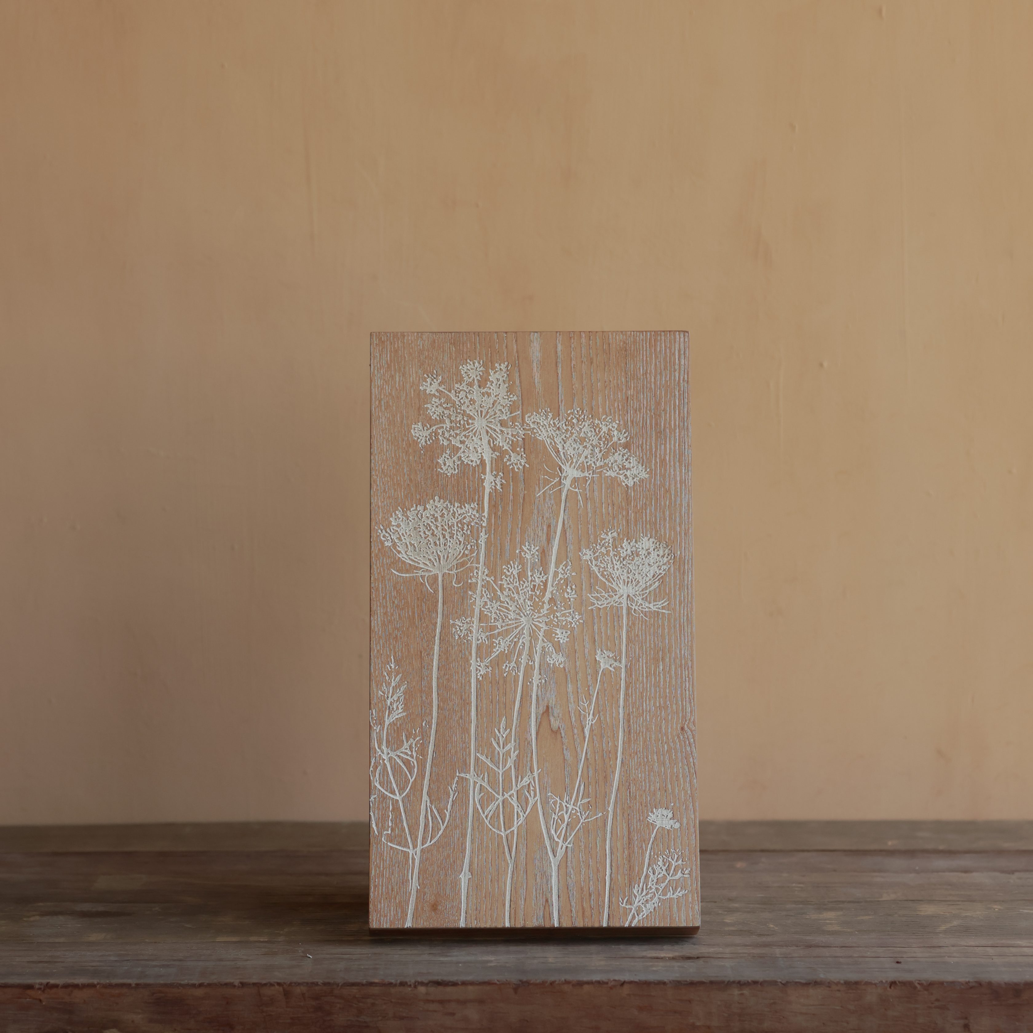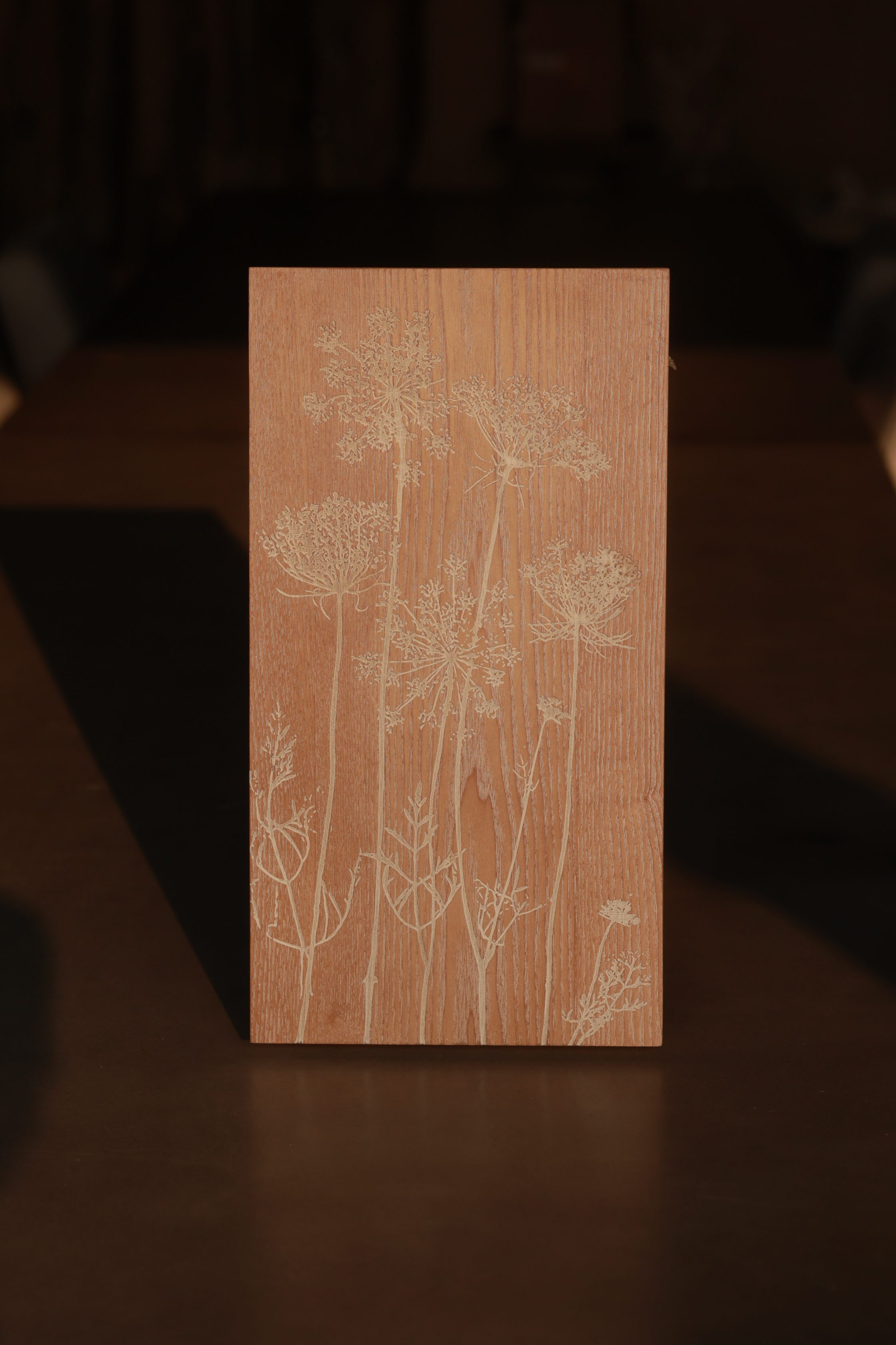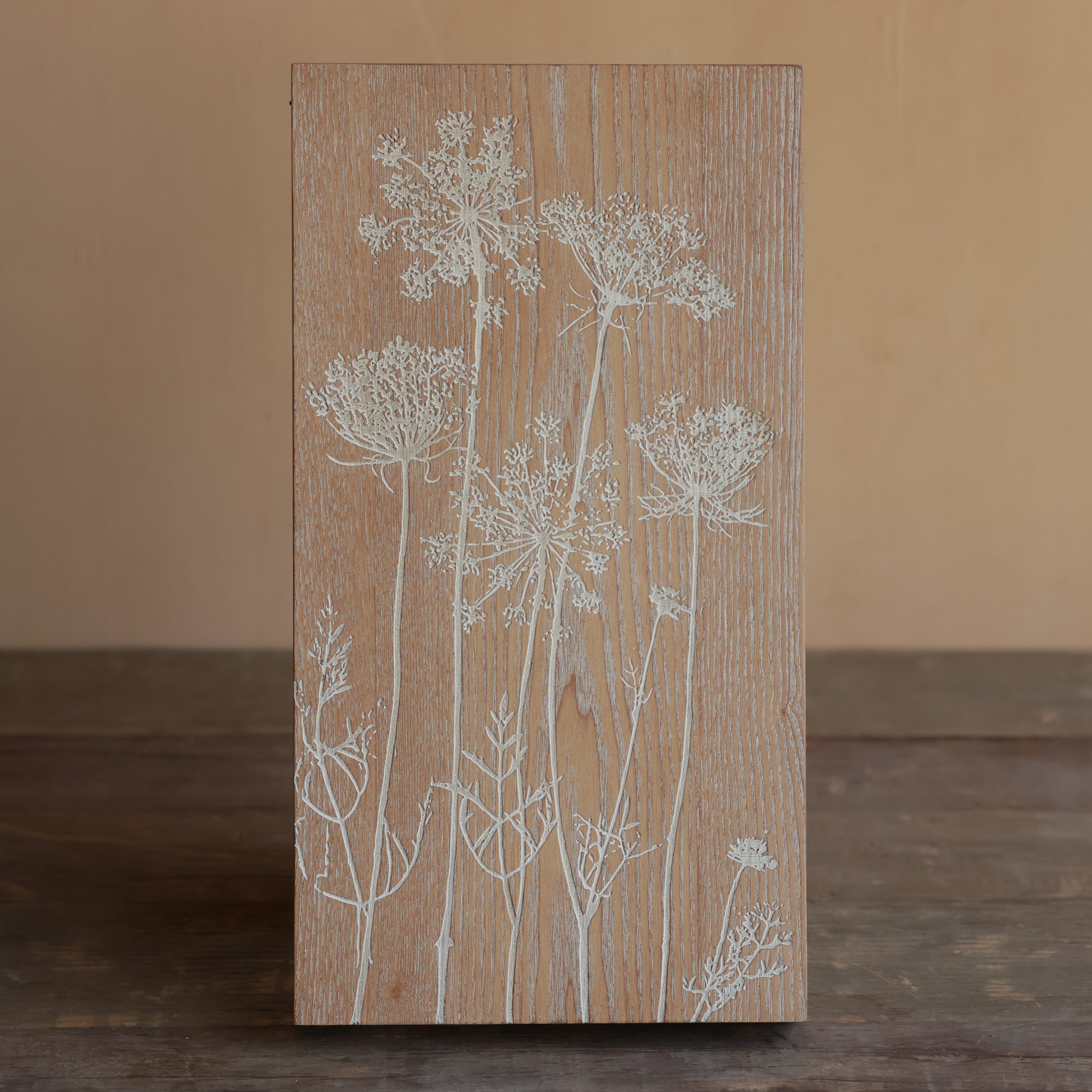 A beautifully crafted wooden wall hanging featuring an intricate floral engraving that captures the delicate elegance of wildflowers. The natural wood grain enhances the rustic charm, making it a perfect addition to any space with a minimalist, bohemian, or nature-inspired aesthetic. Its subtle yet detailed design creates a soothing visual appeal, ideal for enhancing living rooms, bedrooms, or entryways. A timeless piece of decor that brings warmth and serenity to your walls.
