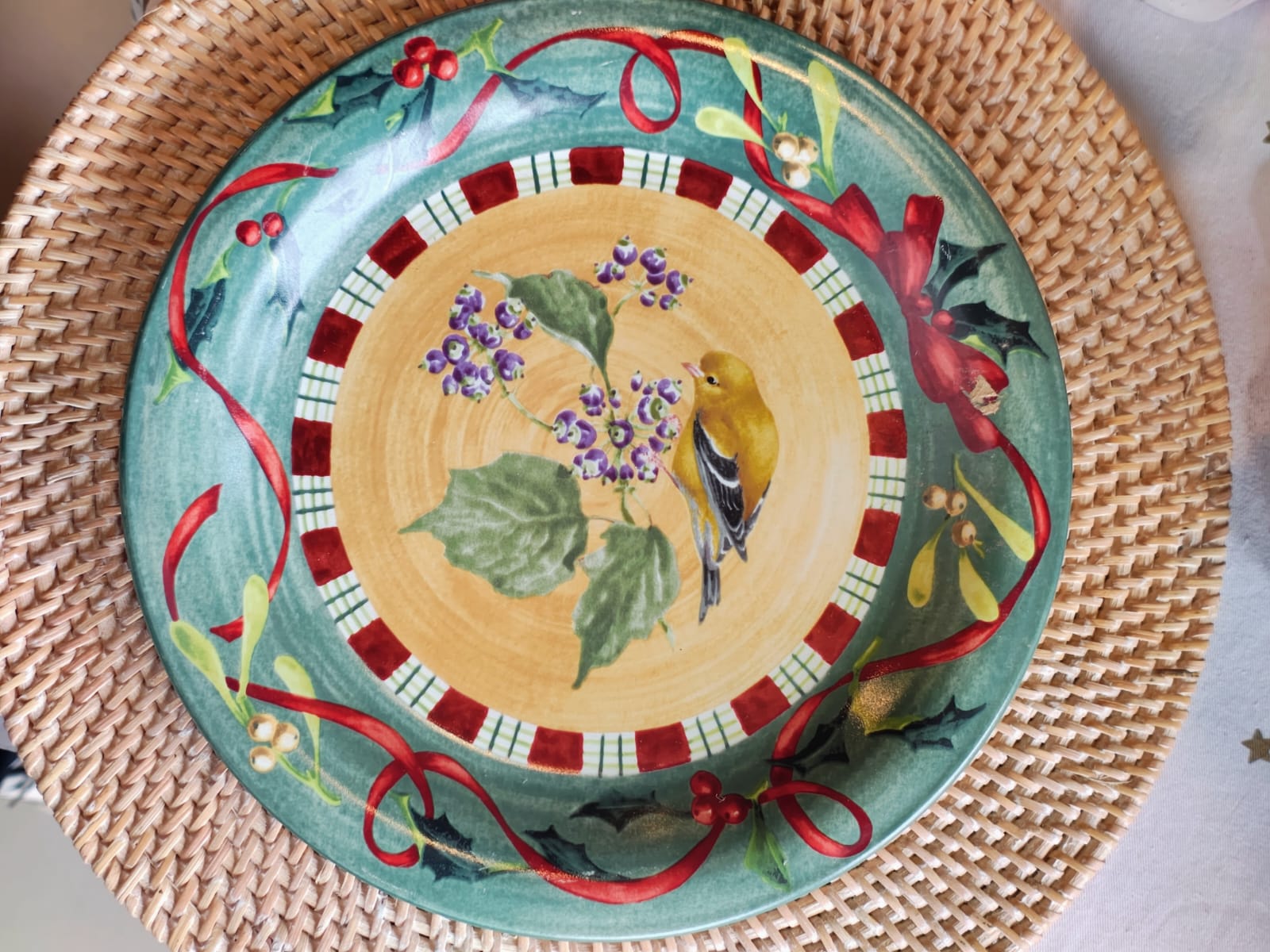 Infused with the rustic elegance of the season, the Winter Greeting Plate beautifully captures the charm of nature in winter?s embrace. At its center, a golden songbird perches delicately upon a branch of winter berries a scene framed by a rich palette of deep forest green, muted gold, and crimson ribbon accents. This design evokes the warmth of a countryside Christmas, where natural beauty and festive cheer come together in perfect harmony. The Winter Greeting Plate is distinguished by its intricate detailing and painterly design, creating a sense of timeless artistry that complements both traditional and contemporary settings. The earthy tones and soft textures lend a sense of serenity, while the subtle checkered border adds a touch of sophistication. Whether displayed as part of a holiday tablescape or showcased as decorative art, it brings an inviting and nostalgic touch to any space. Crafted from quality ceramic with a smooth glazed finish, this plate is both elegant and functional. Perfect for serving, layering, or decorative display, it?s a versatile piece that celebrates the simple joys and natural beauty of the winter season.